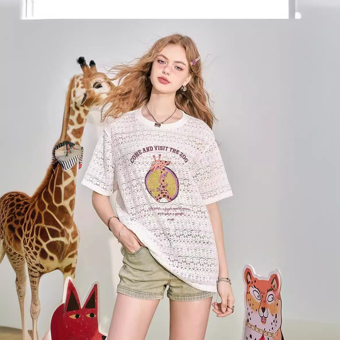 白色蕾丝镂空短袖t恤女夏季新款宽松百搭显瘦上衣