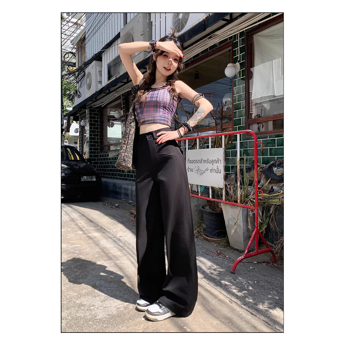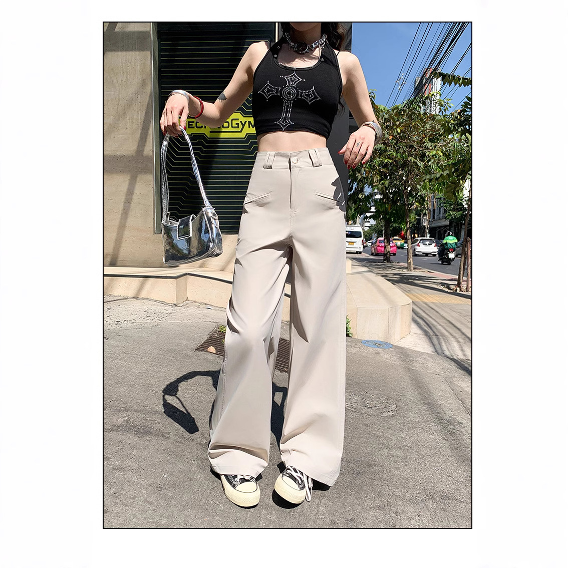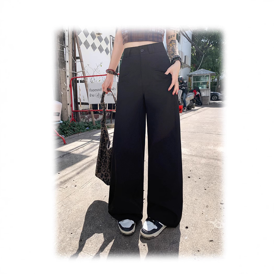 复古慵懒风新款通勤休闲西裤女2025春夏高腰显瘦直筒拖地裤长裤女