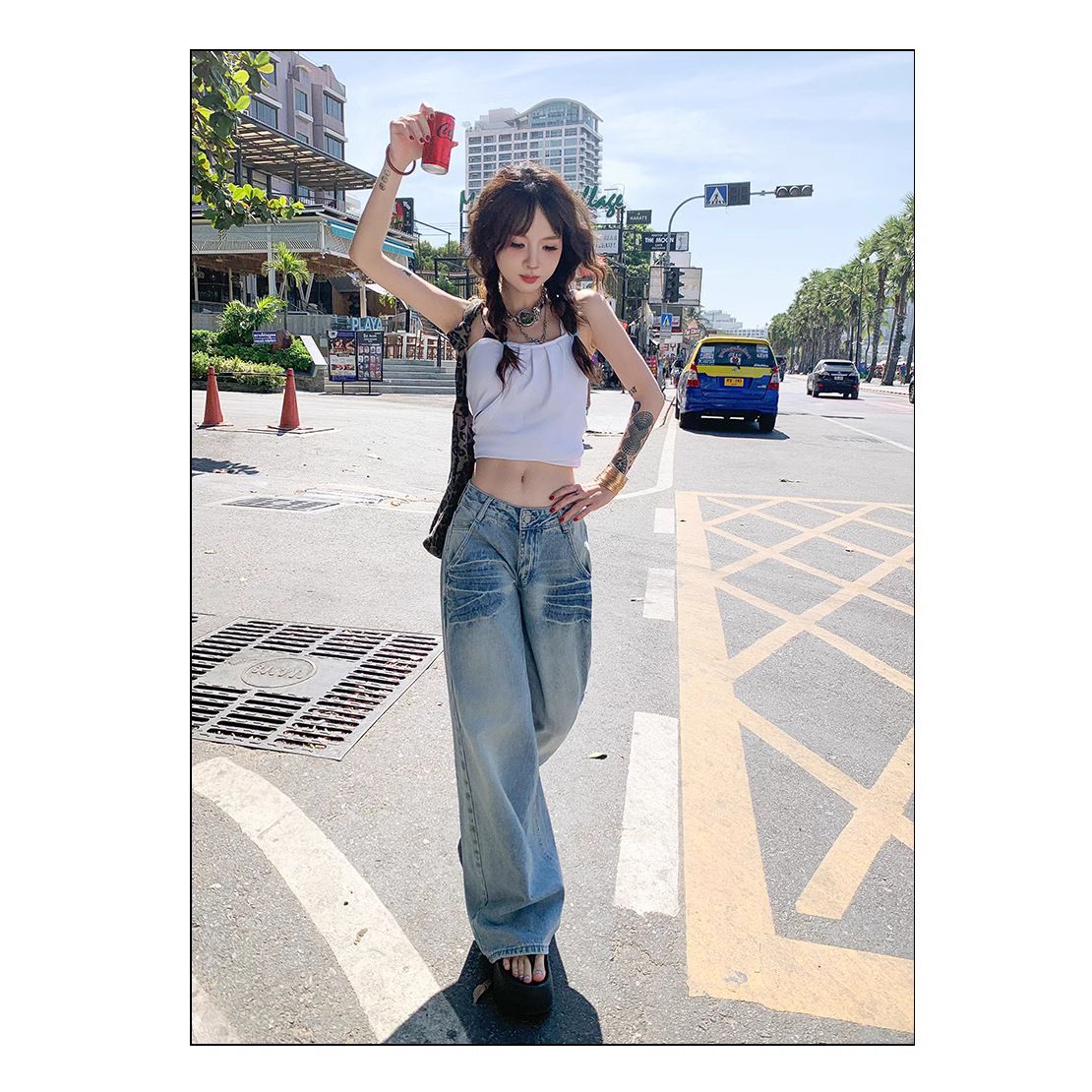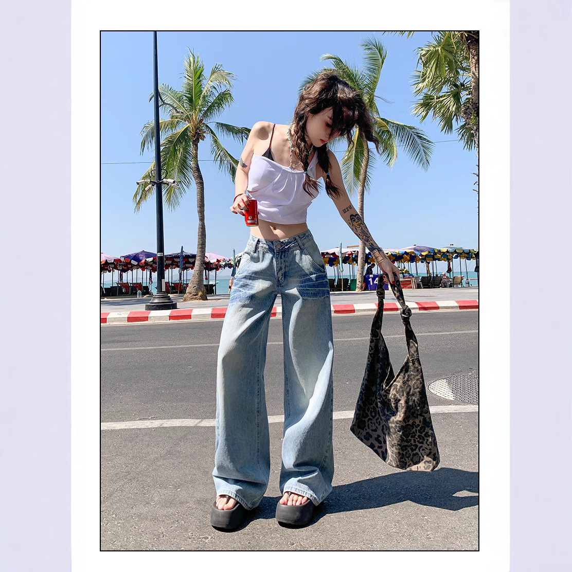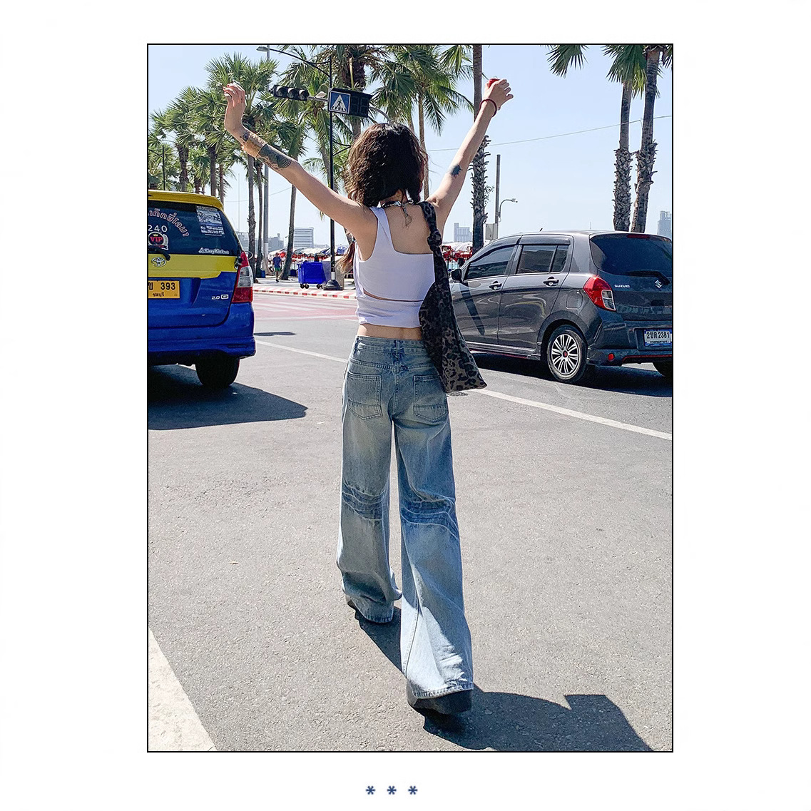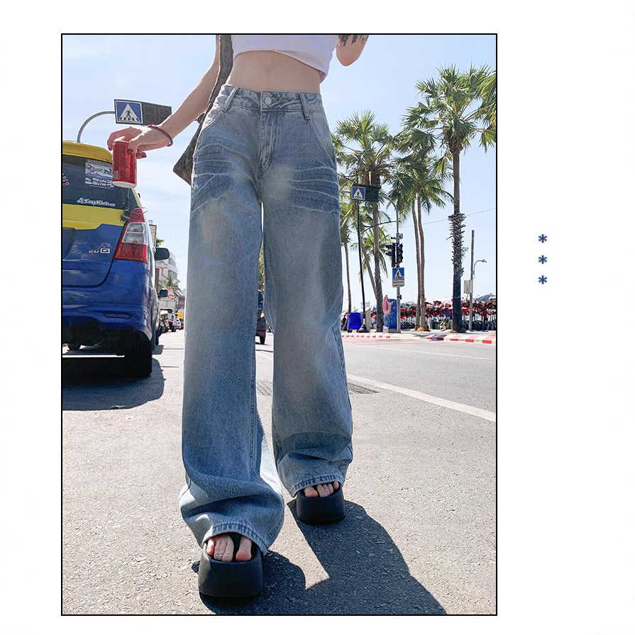 美式复古辣妹低腰垂感百搭喇叭直筒牛仔裤女水痕2025春夏季新款