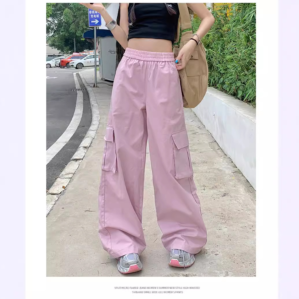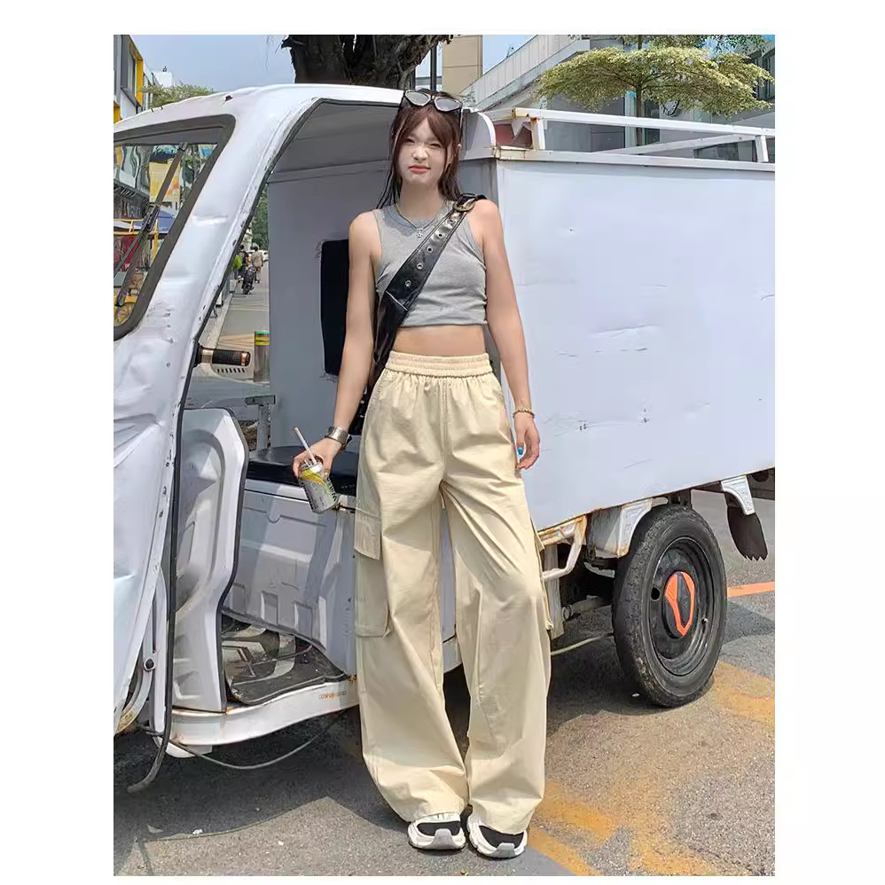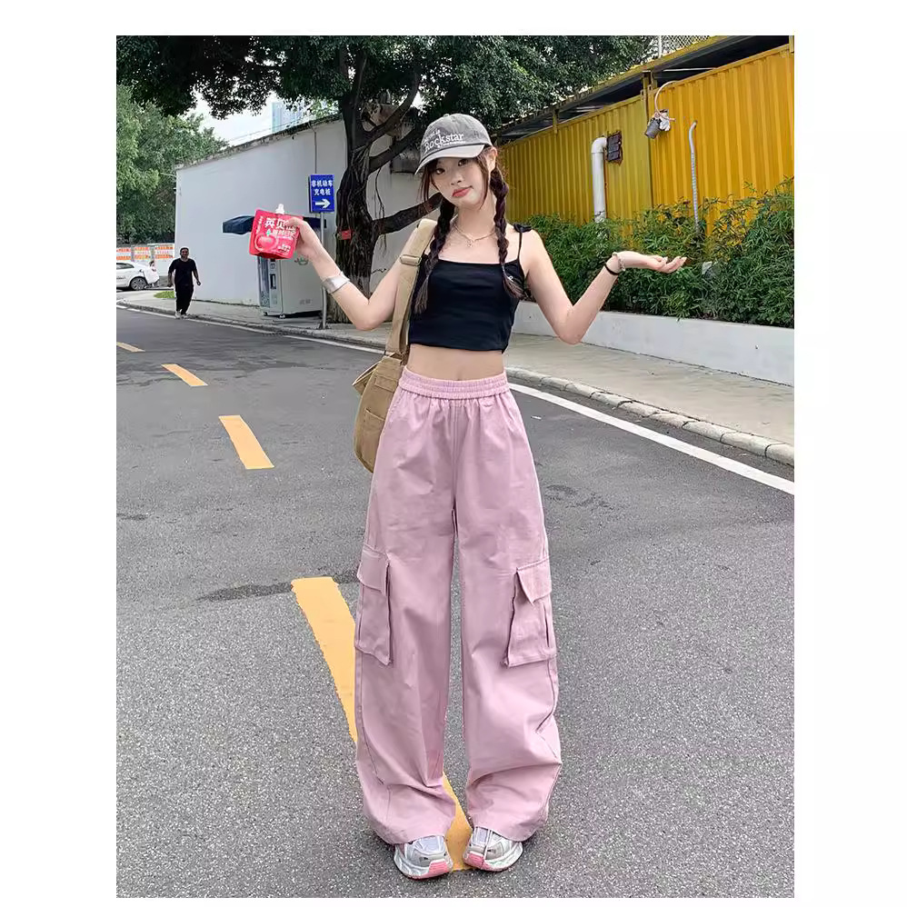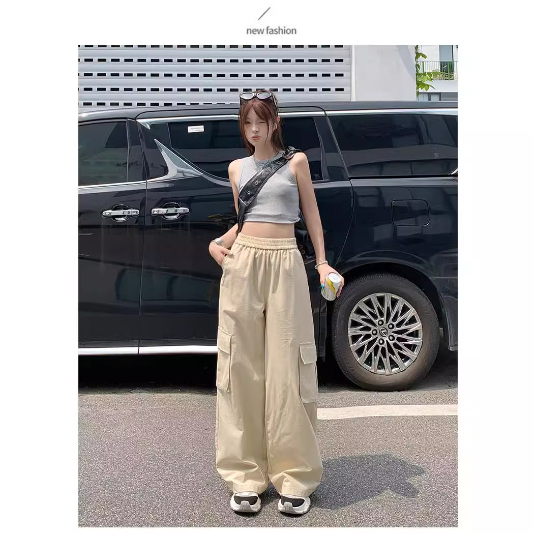 美式辣妹街头工装裤子女夏季宽松休闲嘻哈阔腿垂感长裤子