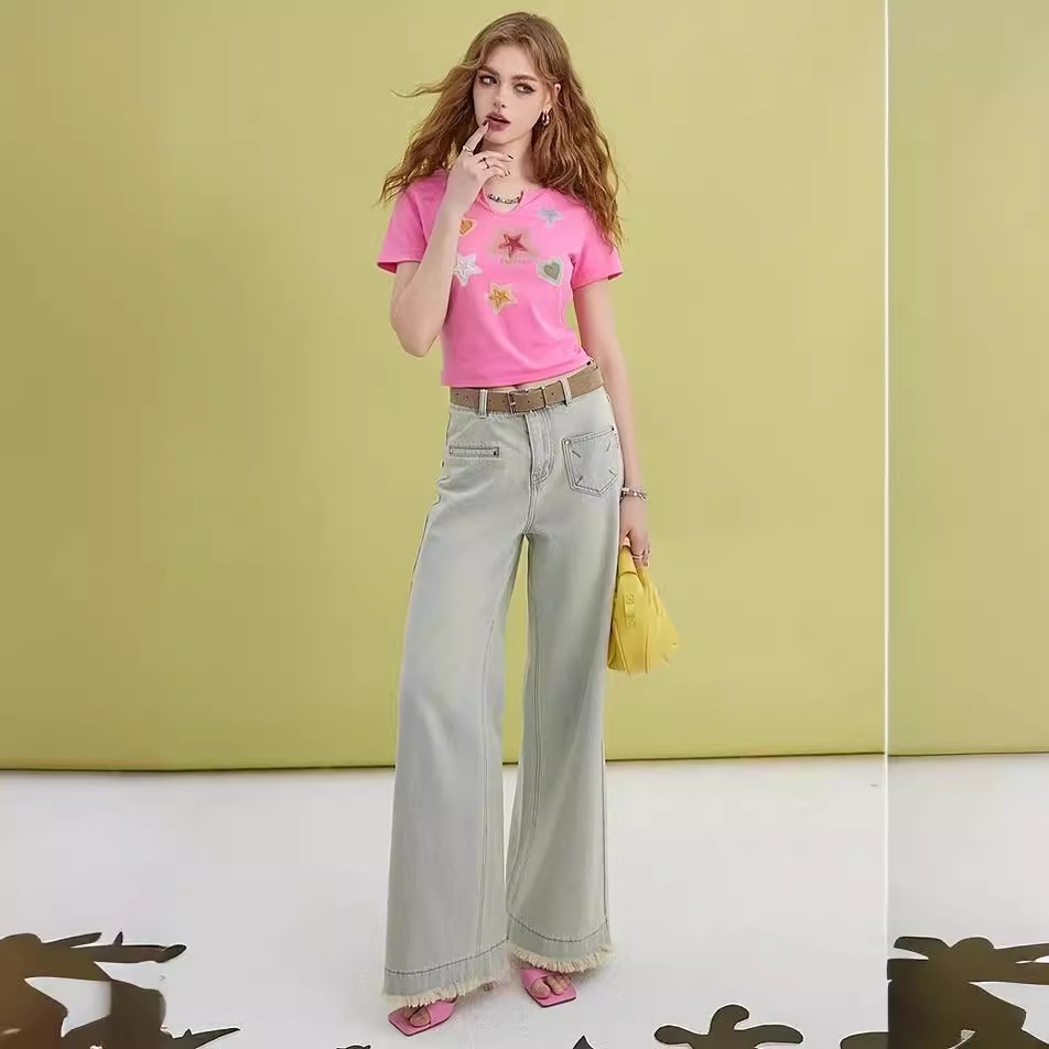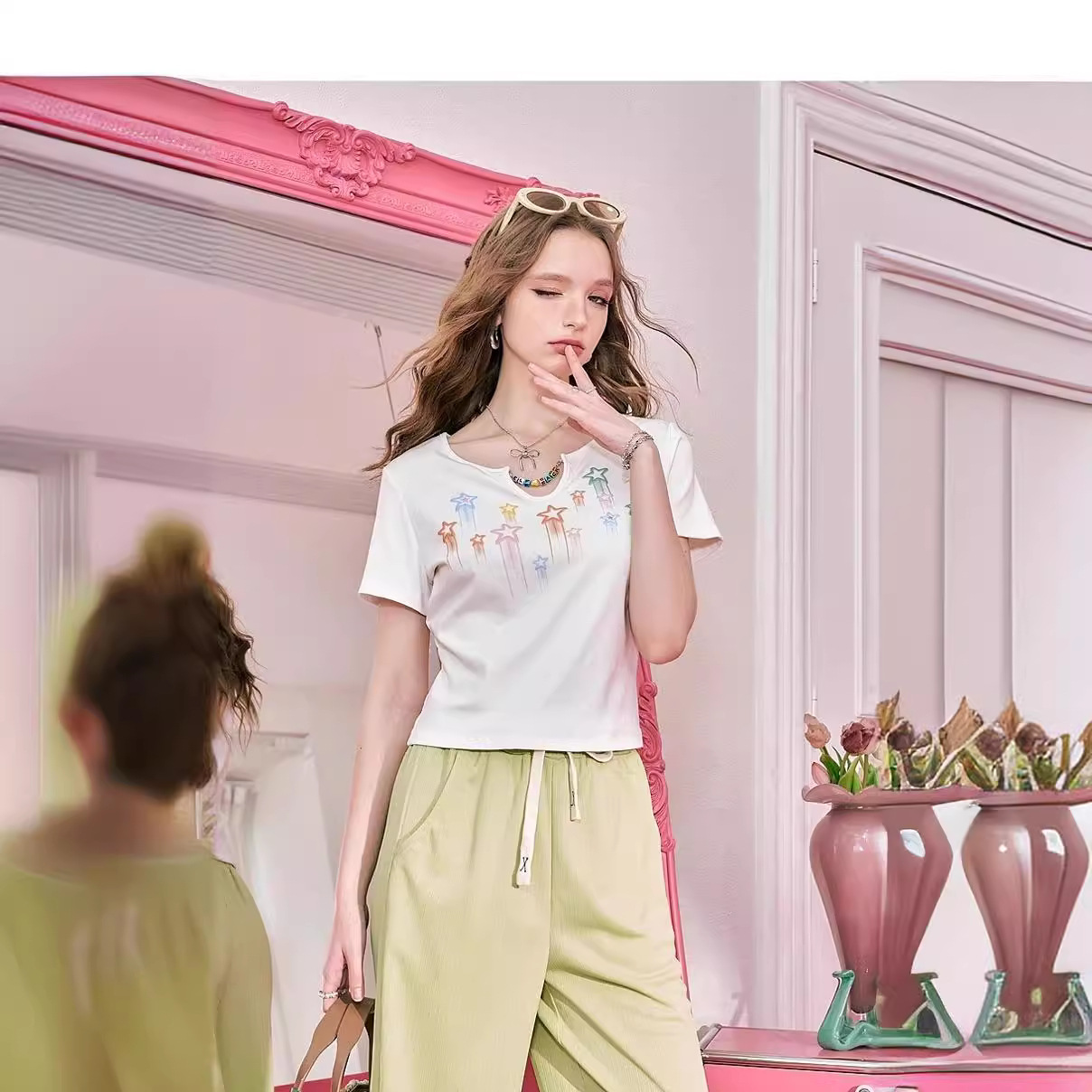 修身正肩短袖t恤女夏新bm可脱卸链条设计