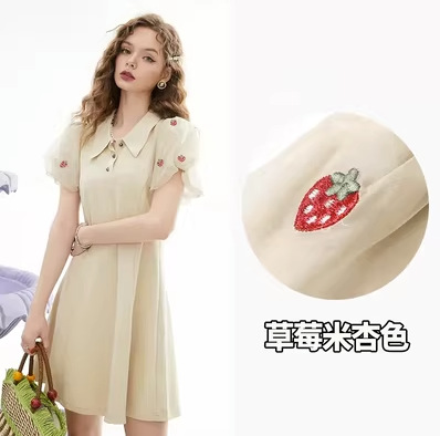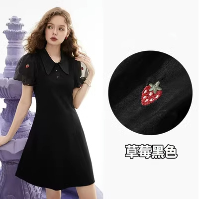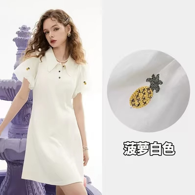 白色polo连衣裙女夏新款泡泡袖高端精致气质小黑裙