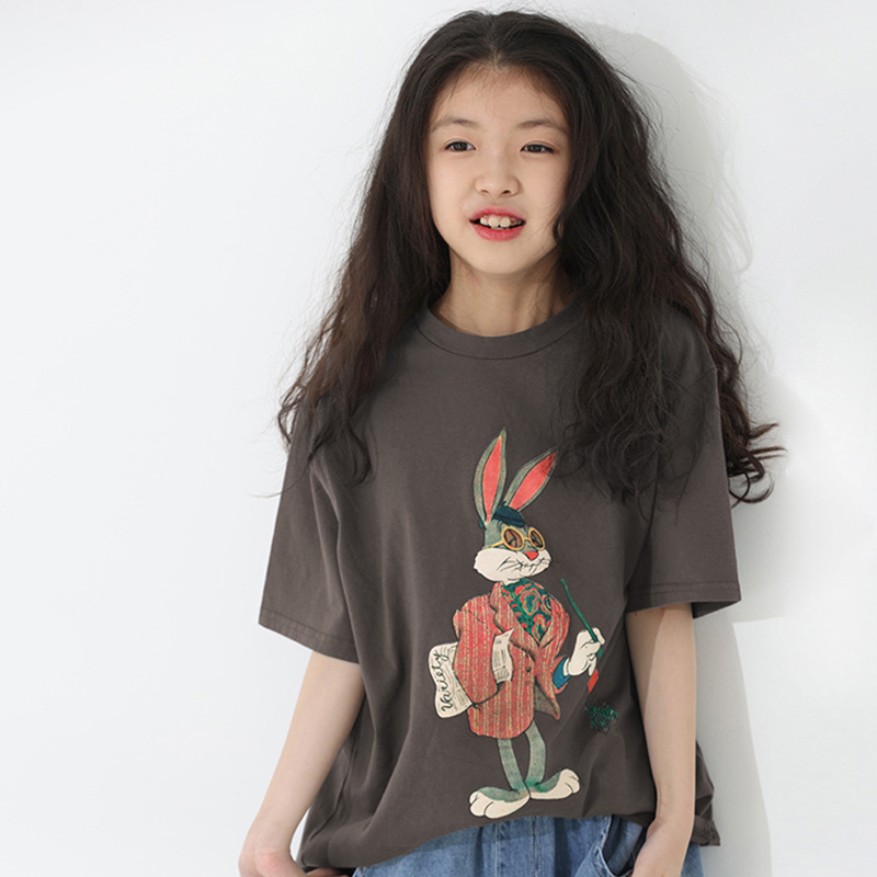 童装女童夏装短袖T恤新款宽松卡通印花儿童男孩夏季潮服大童帅气6