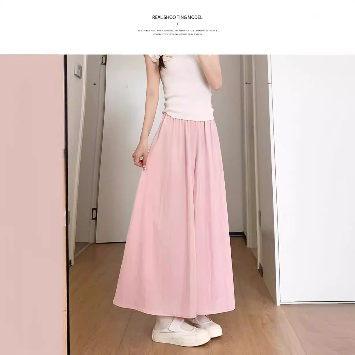 粉色裙裤女夏季2025新款小个子a字半身百褶裙高腰垂感休闲阔腿裤