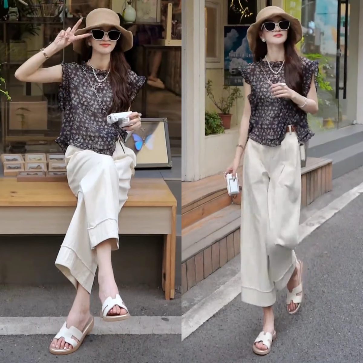 夏装搭配一整套碎花飞飞袖小衫阔腿裤小个子显高时尚减龄两件套装