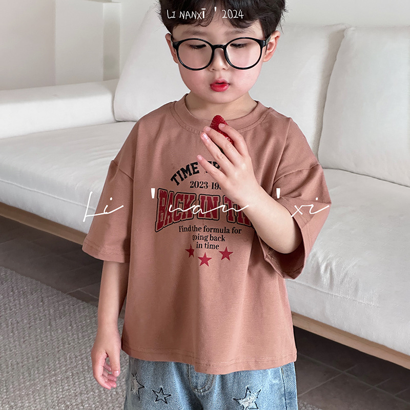 80239夏季新款儿童休闲短袖T恤男女童短袖T3-8岁宝宝原创卡通短袖