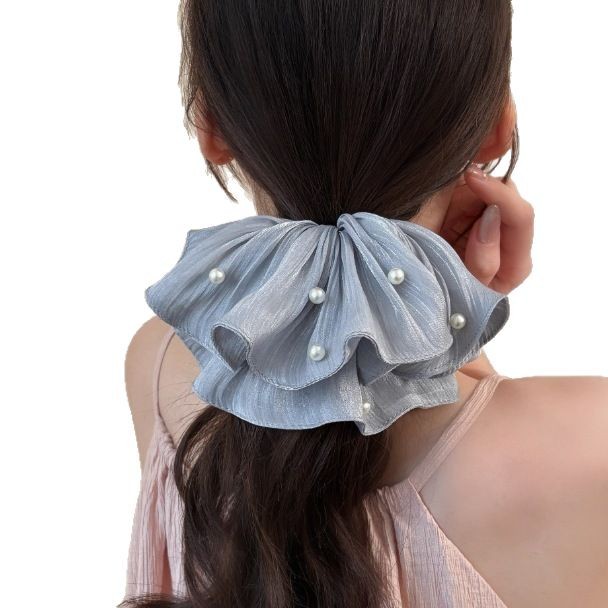 超仙大肠发圈女珍珠网纱发饰高级感2025新款法式大号头花头绳头饰