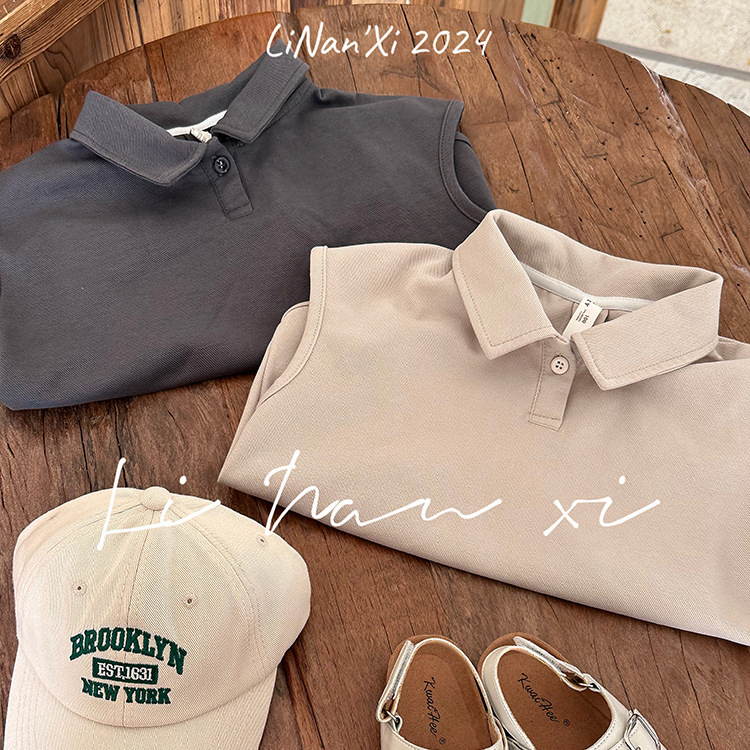24夏季新款男女童POLO领针织T恤3-8岁宝宝兄妹装休闲上衣翻领无袖