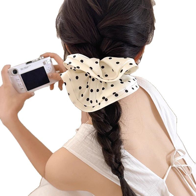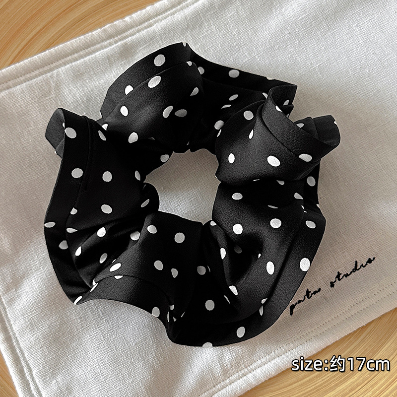 黑色波点缎面大肠发圈女高弹力扎马尾头绳气质不伤发耐用发绳头饰