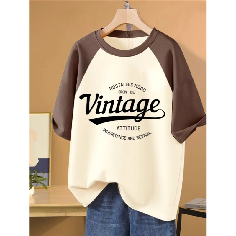 夏季纯棉短袖t恤女新款爆款设计感小众美式宽松半袖上衣200斤