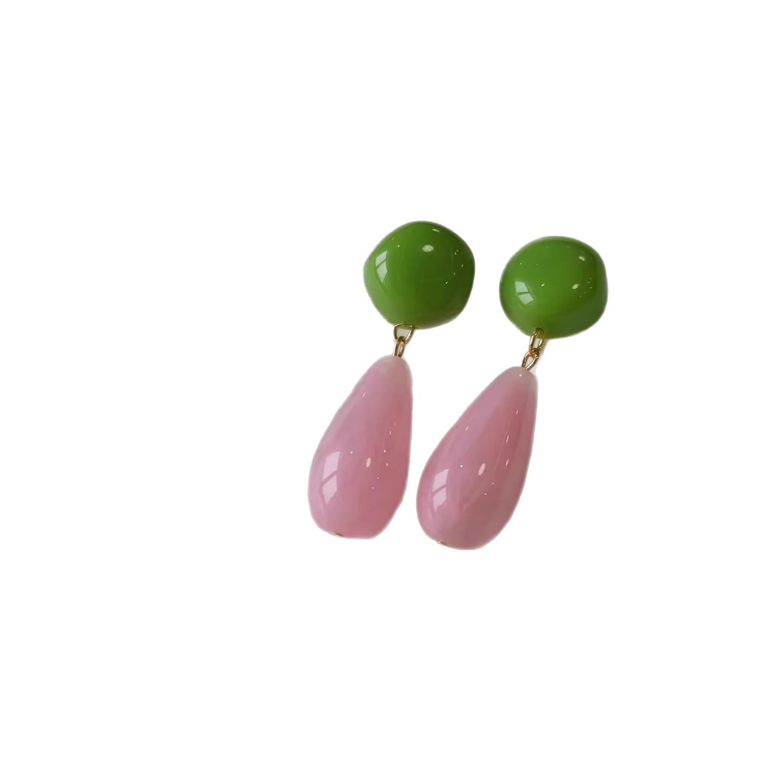 小清新粉绿撞色耳环复古水滴耳饰小众设计感夏天爆款精致独特耳饰
