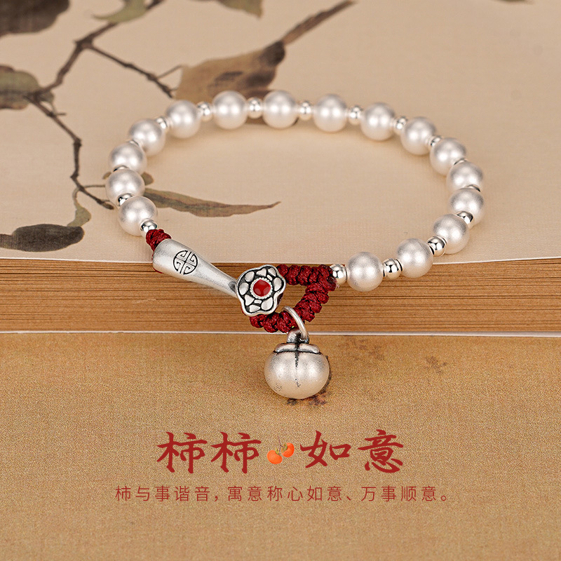 蒂奇亚实拍990足银柿柿如意手链女复古国风设计柿子红绳手饰礼物