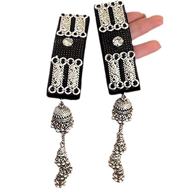 易梦玲同款银色流苏发夹女新中式侧边刘海碎发卡民族风边夹子头饰