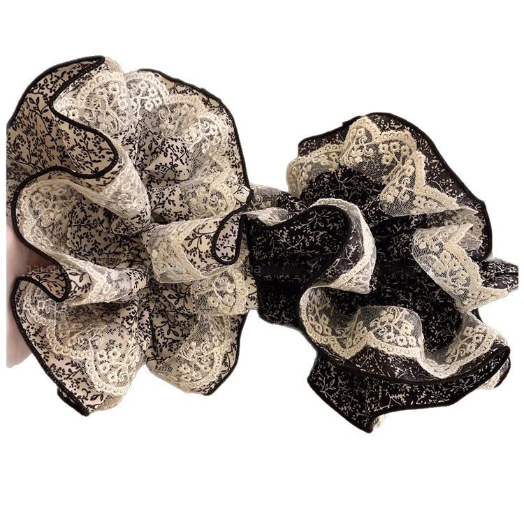 爆款四层款蕾丝小碎花大肠发圈复古法式高级感裙边花苞丸子头发绳