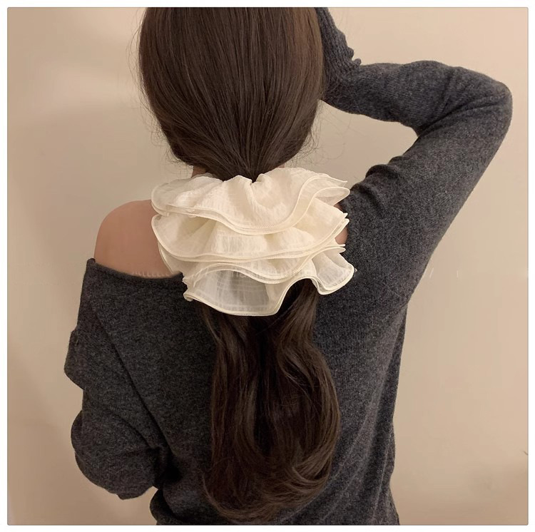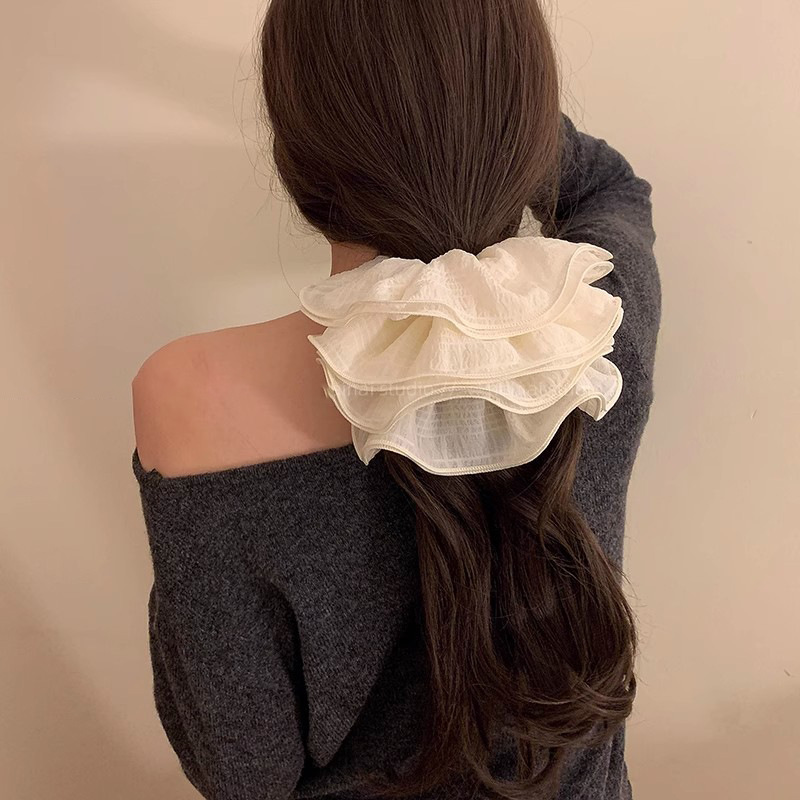 法式超大号网纱大肠发圈女高级感褶皱网纱头绳女2025新款皮筋头饰