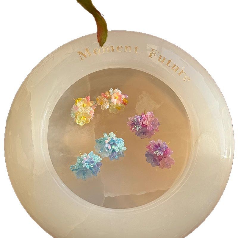 虞书欣同款度假风立体花朵耳钉女炫彩多巴胺春夏新款串珠耳环耳饰