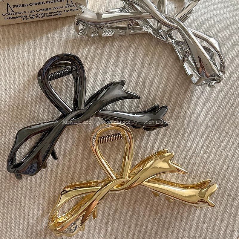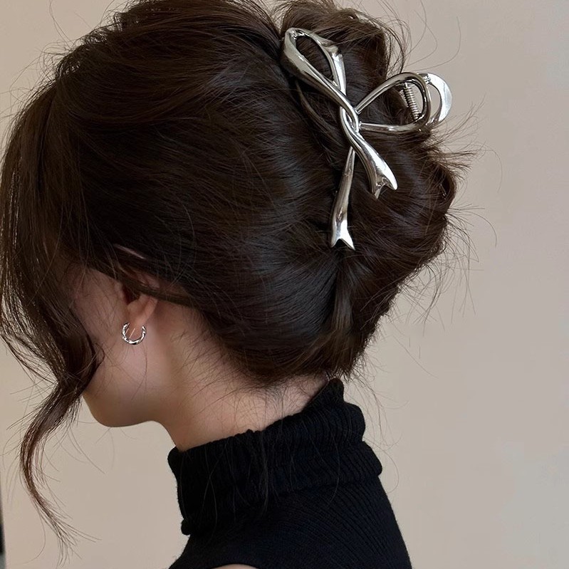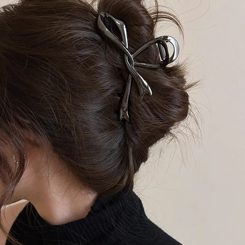 飘带蝴蝶结头发抓夹女新款高级感后脑勺发夹气质鲨鱼夹子发饰