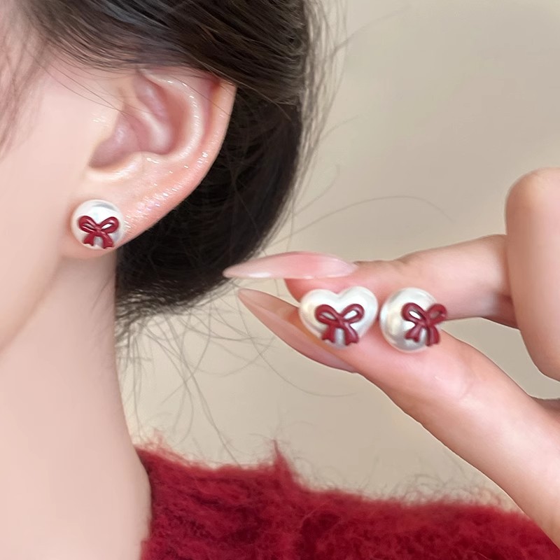 法式蝴蝶结珍珠耳环女款网红温柔小巧耳钉秋冬小众设计高级感耳饰