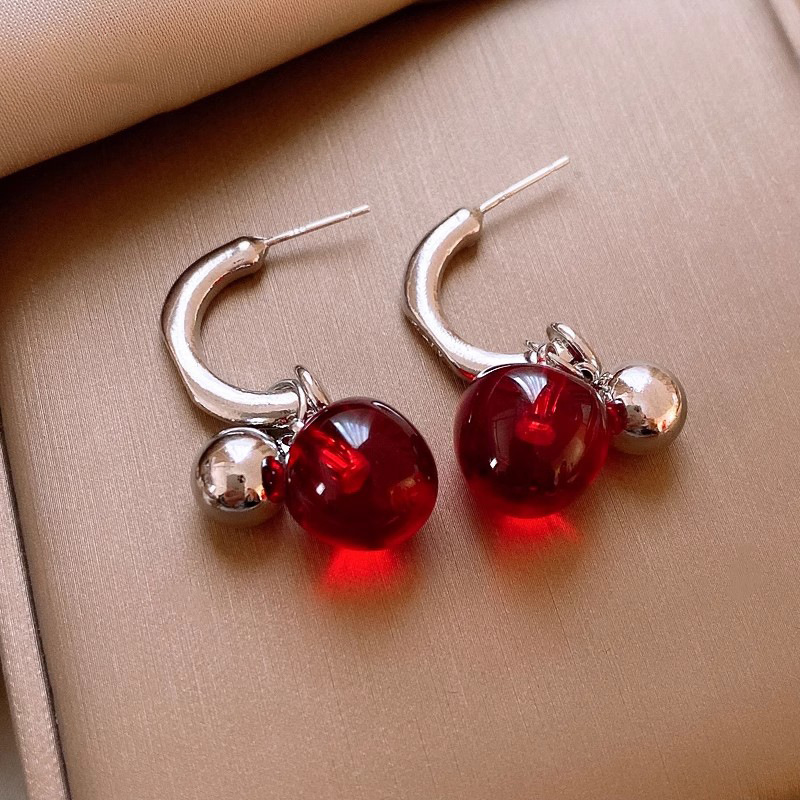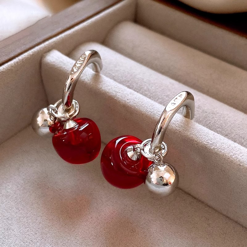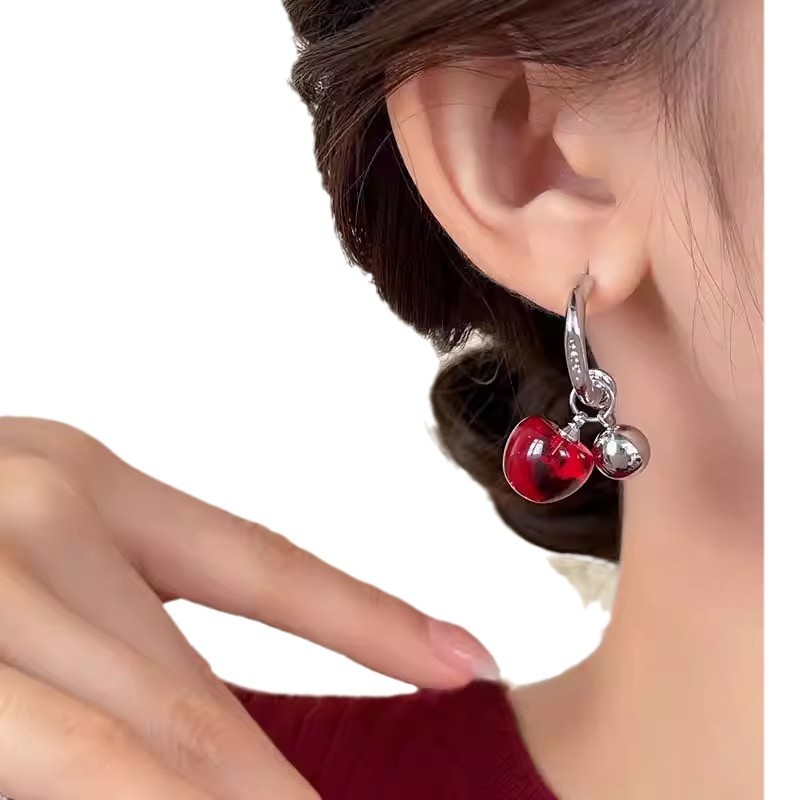 秋冬樱桃耳钉女不规则小众c形耳圈高级独特夸张耳环新款耳饰