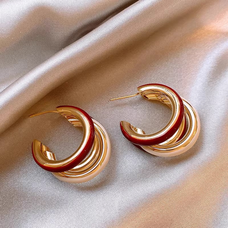 安可拉红滴釉撞色耳钉女简约小众高级感气质秋冬耳环新款爆款