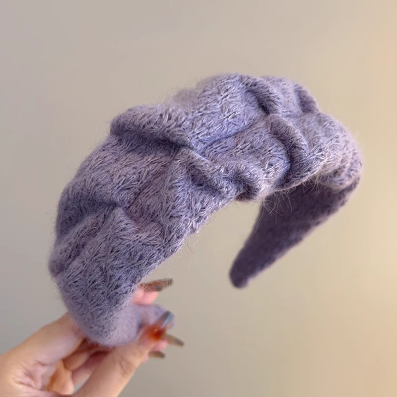 秋冬毛绒蓝色宽边发箍新款毛线高颅顶高级感压发发卡头箍女