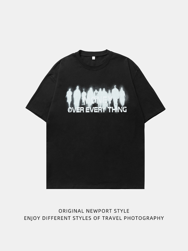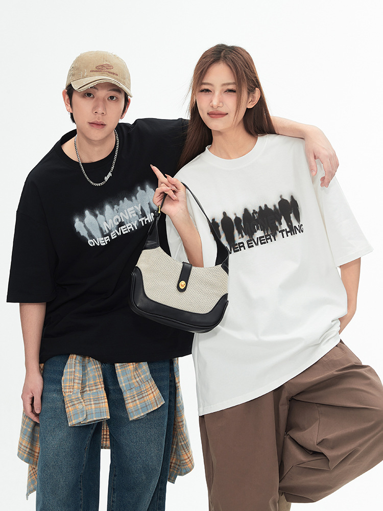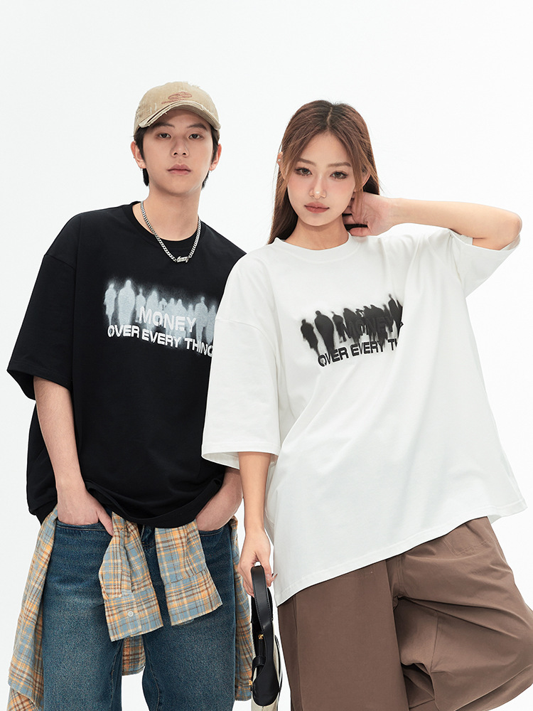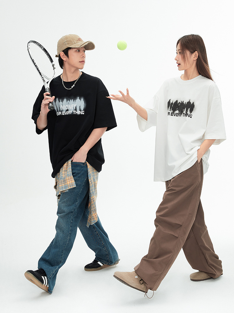 韩路男装 设计感美式印花短袖T恤男女春夏新款情侣装宽松圆领体恤