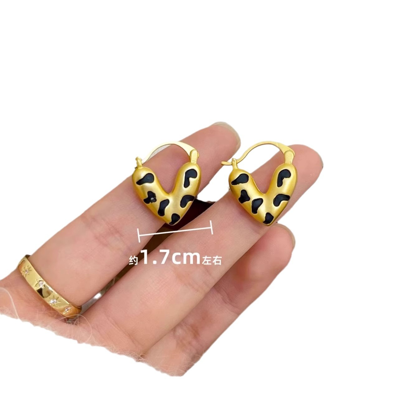 撞色斑纹双面爱心耳扣2025新款个性耳环小众设计独特气质优雅耳饰