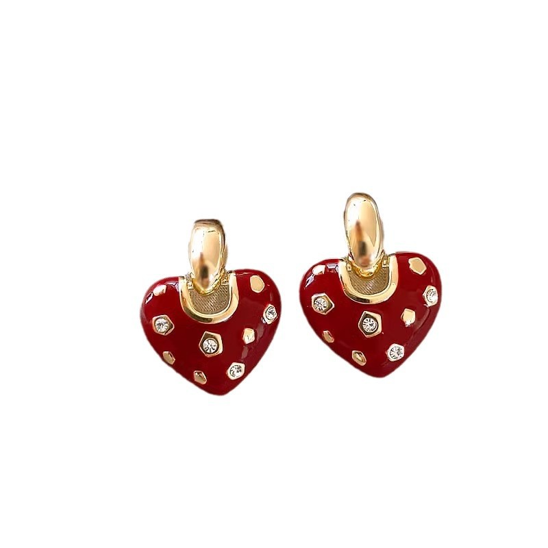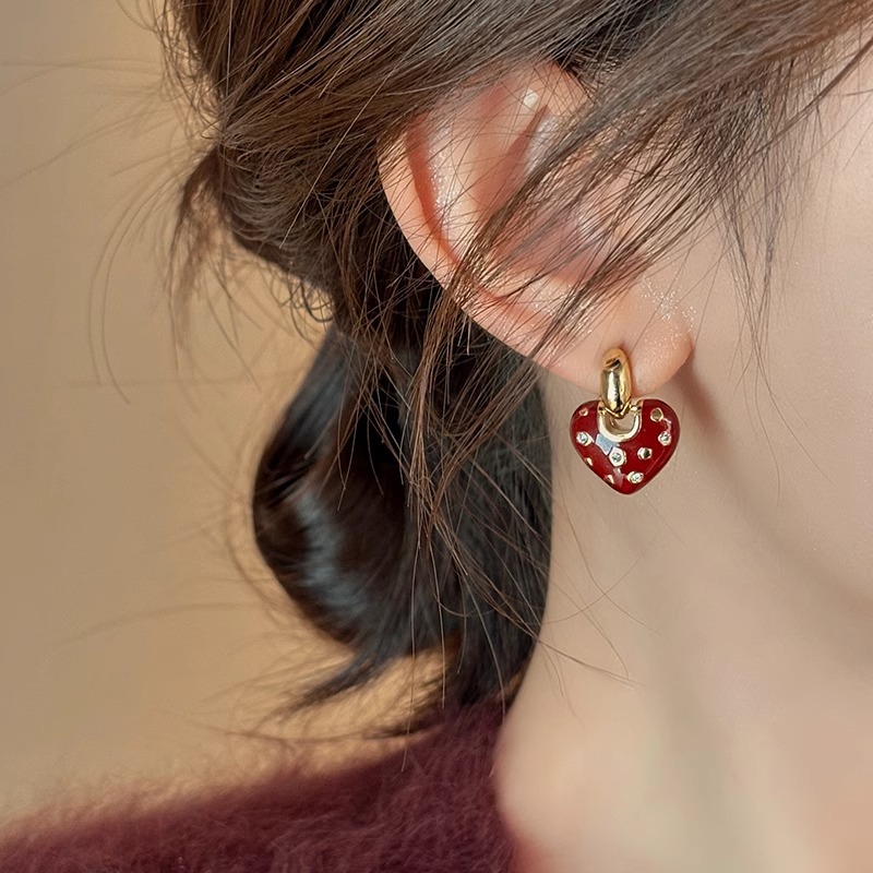 年新款微镶安可拉红色爱心耳环女气质耳钉复古秋冬耳饰高级感