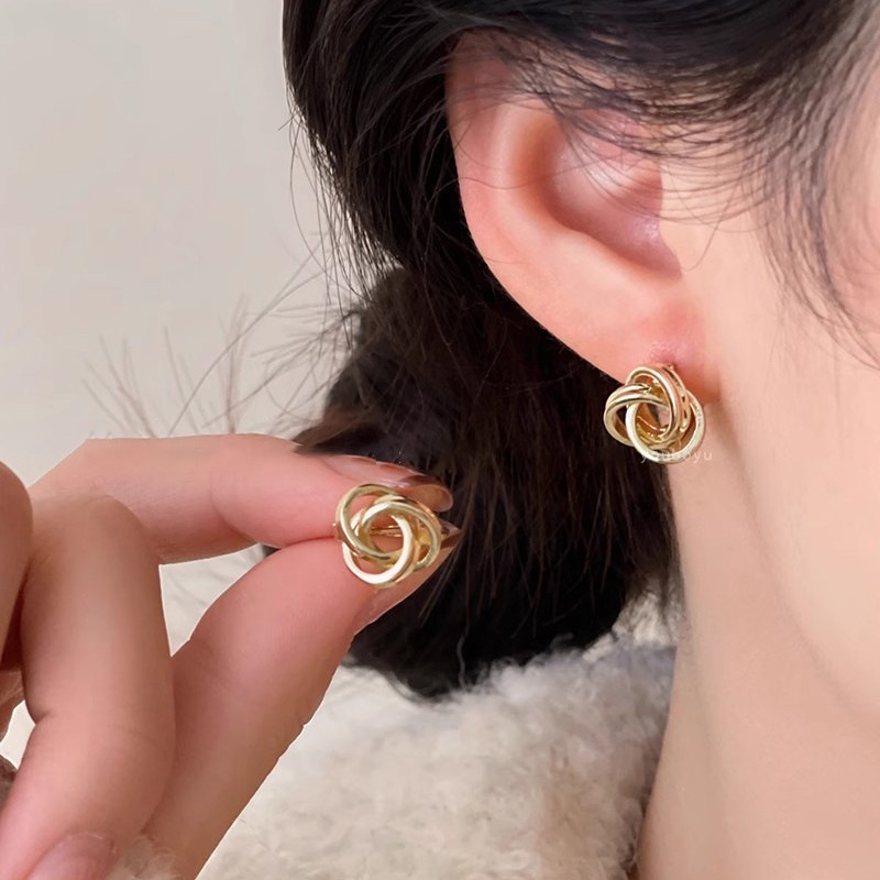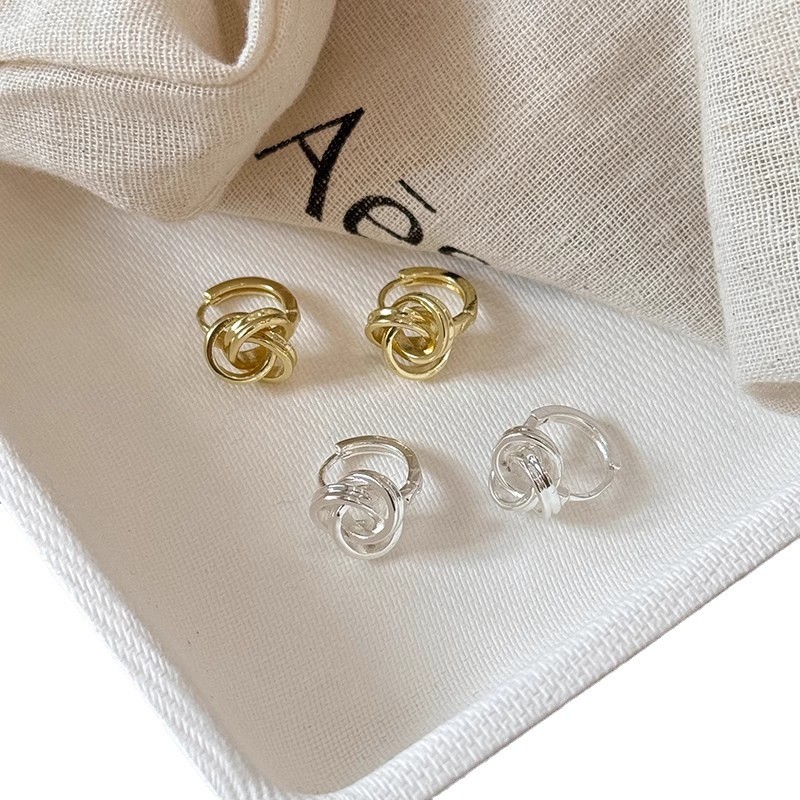 高级感金色麻花耳圈女小众独特设计复古港风耳环轻奢冷淡风耳饰品