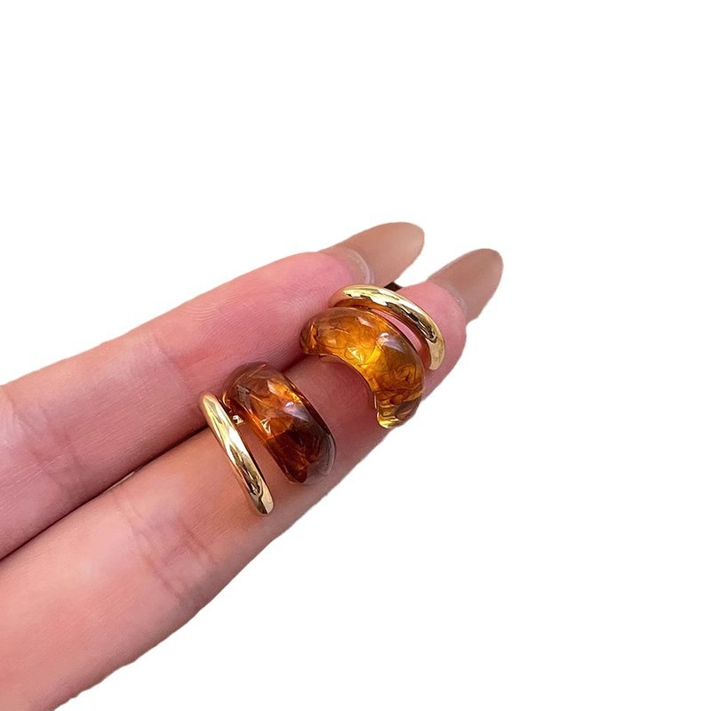 美拉德复古琥珀金色耳环新款爆款高级感耳钉适合秋天的耳饰女