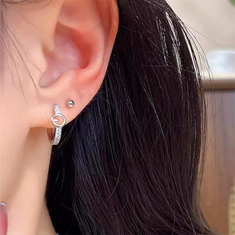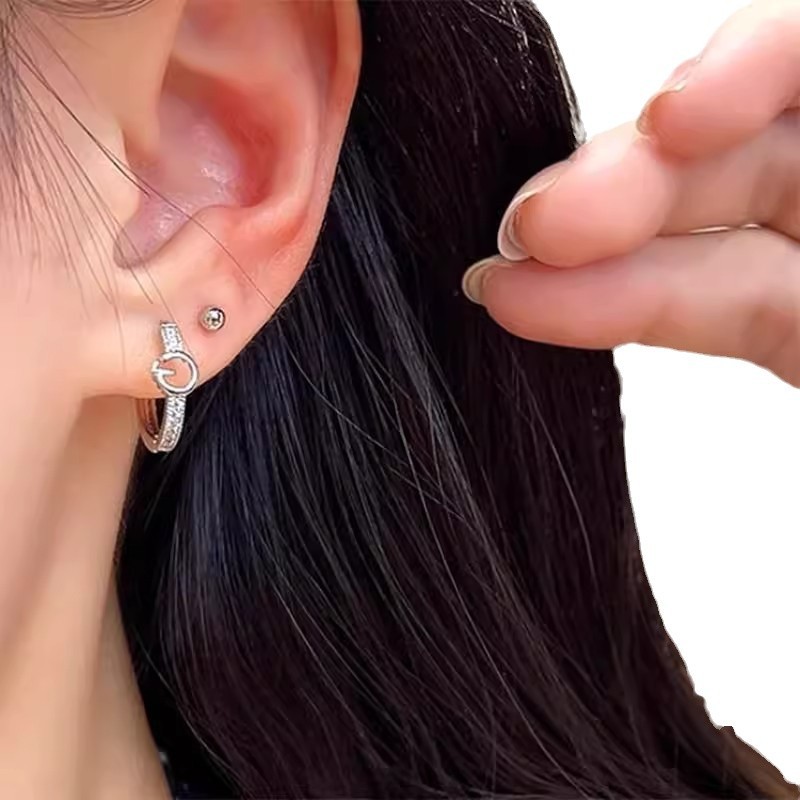 新款轻奢百搭小众设计组合耳饰精致时尚简约镶钻几何圆形耳扣