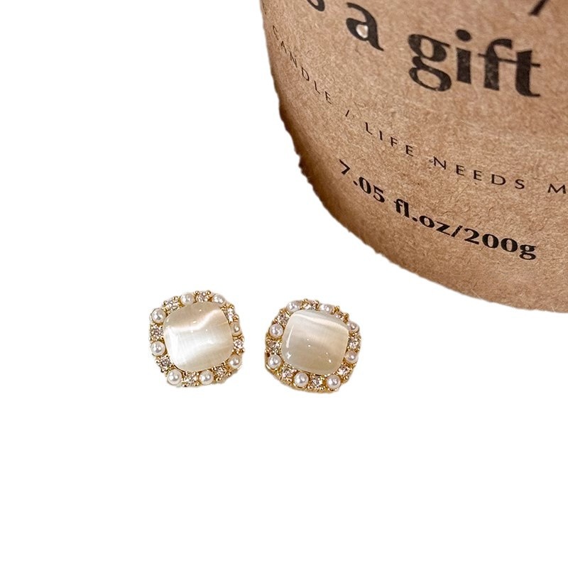 小方糖猫眼石珍珠耳钉女轻奢高级感温柔风耳环秋冬小众百搭耳饰品