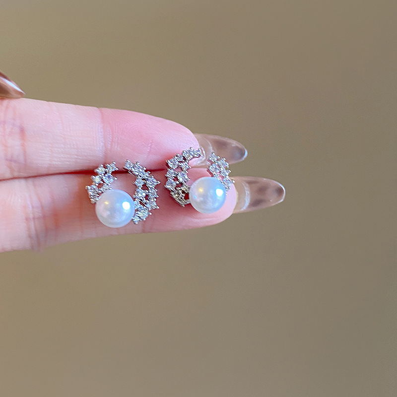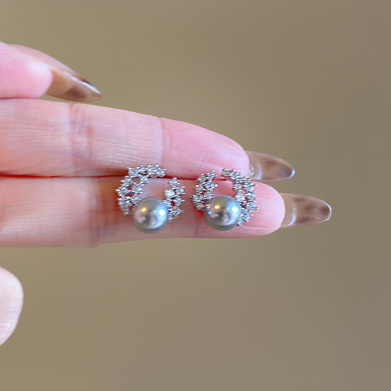 真多麻灰珍珠锆石耳钉女年新款爆款轻奢耳环小众独特气质耳饰