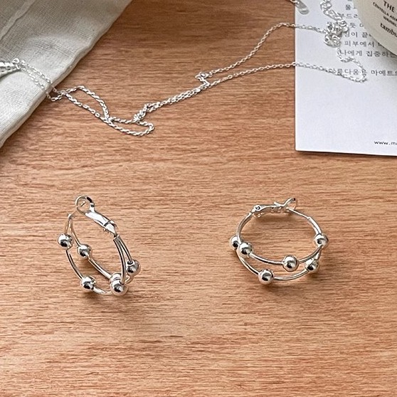 冷淡风金属球双圈耳环女年新款爆款小众设计感气质高级感耳饰