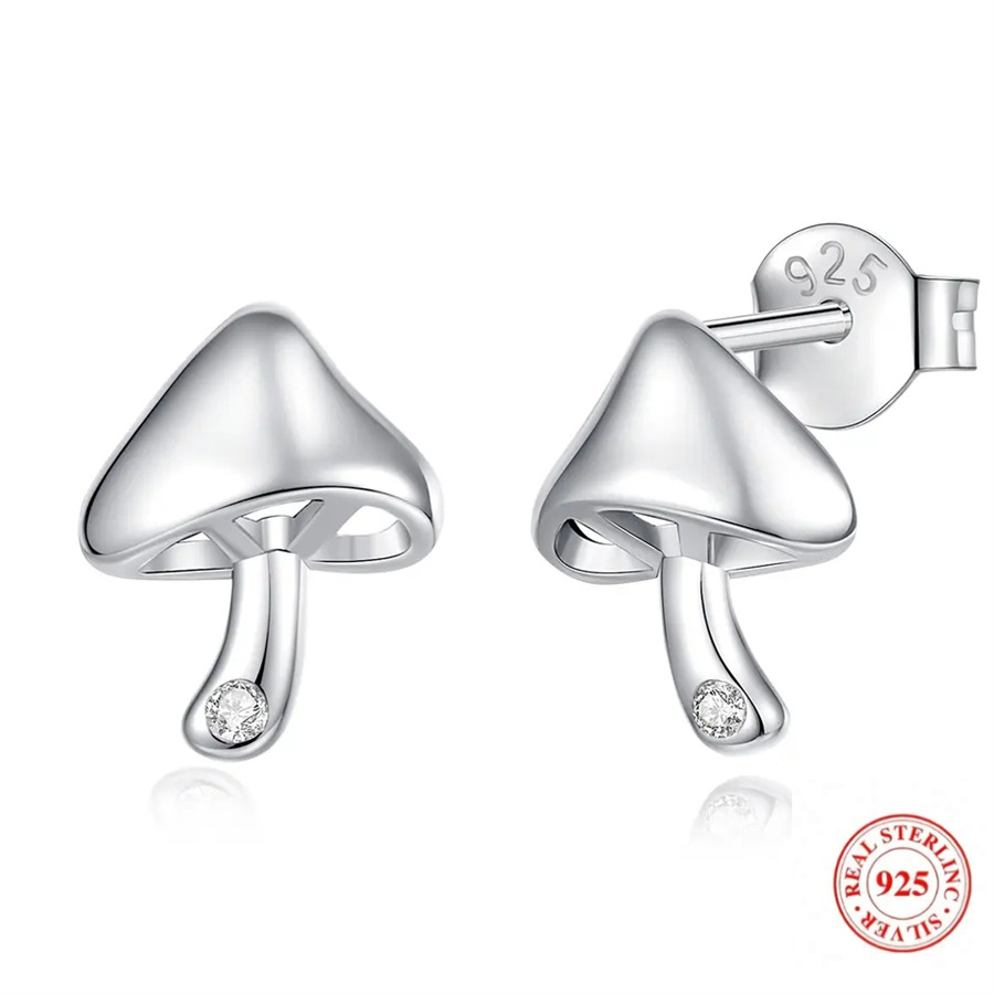 925 Sterling Silver可爱锆石原创个性蘑菇低过敏女士耳钉首饰