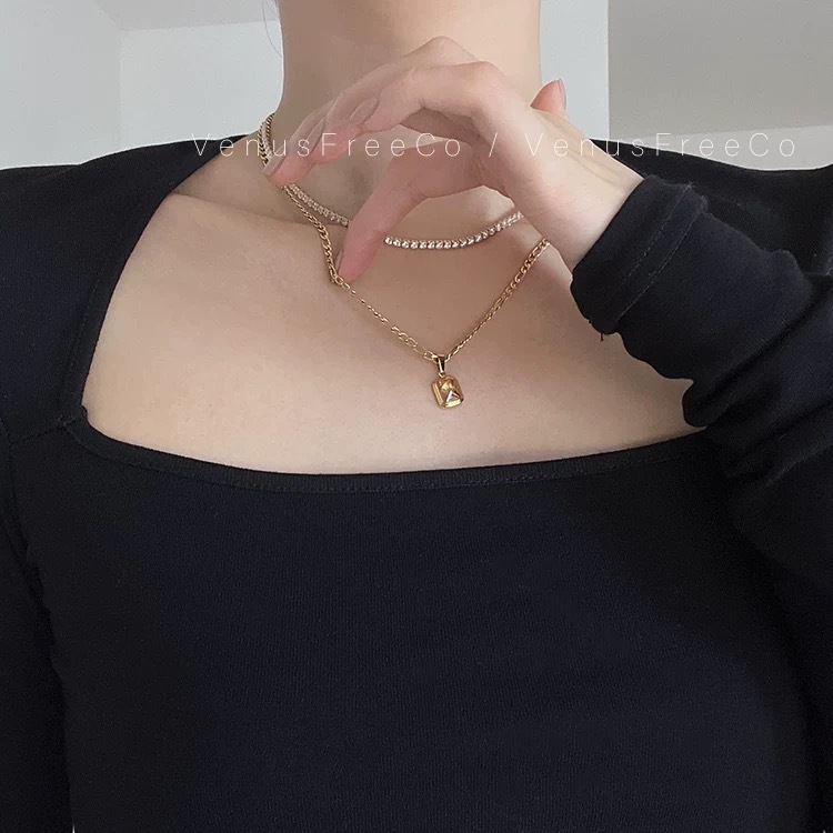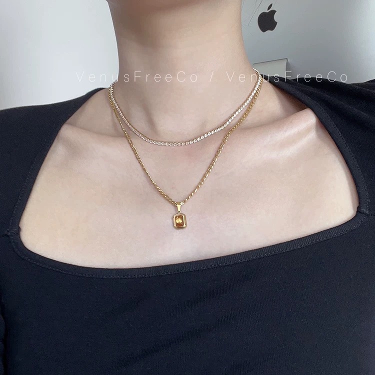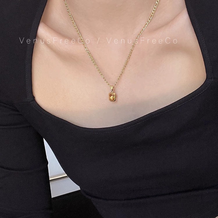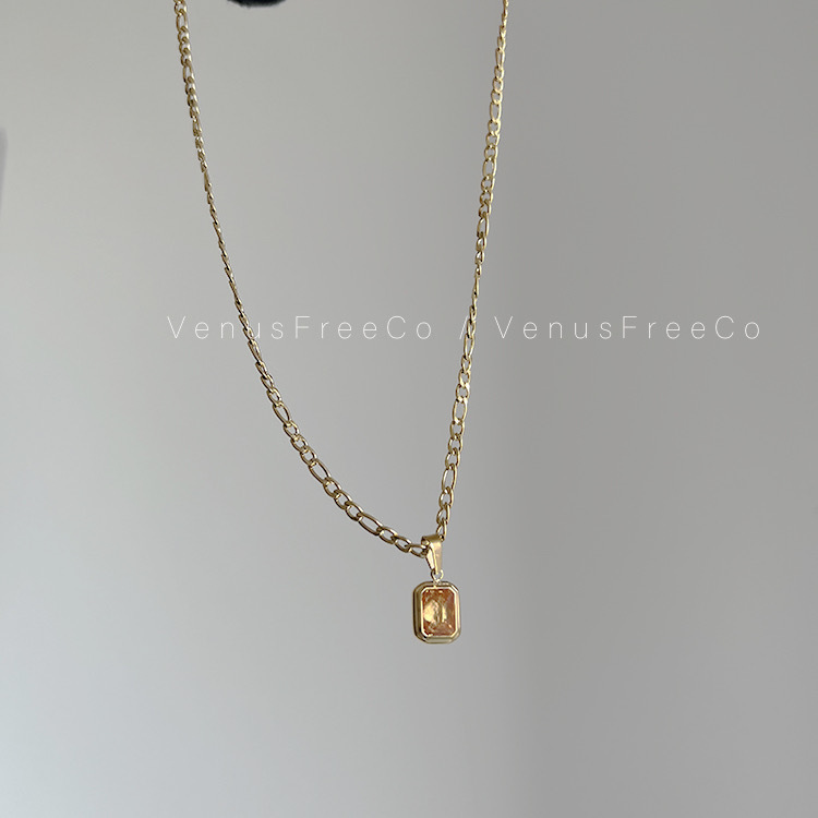 韩国设计落日余晖绝美黄宝石不褪色18k镀金锁骨链项链叠戴ins精致