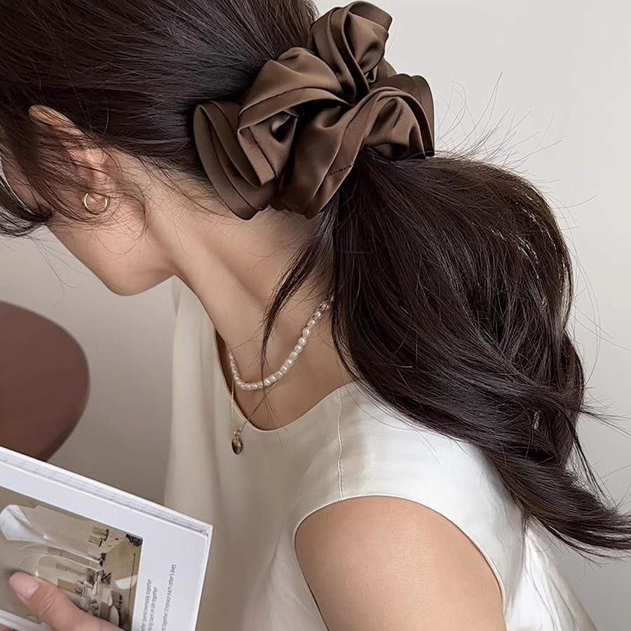安可拉红色绸缎褶皱大肠发圈女新款头花高级感扎马尾发绳头绳