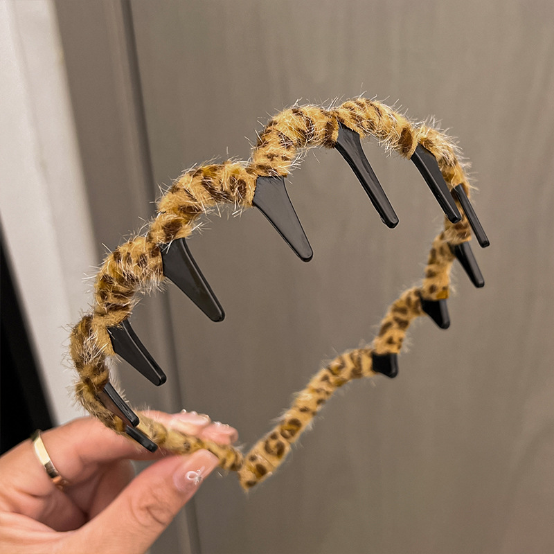 甜酷豹纹带齿波浪发箍女秋发根蓬松神器洗脸压发防滑头箍发卡头饰