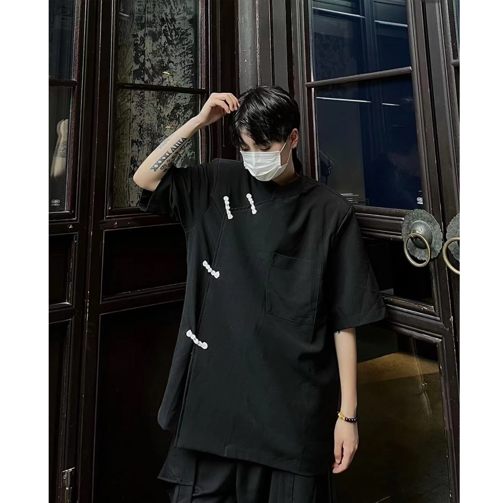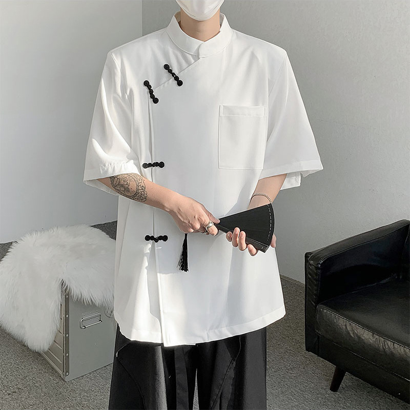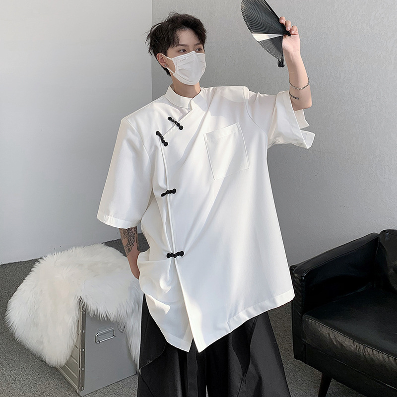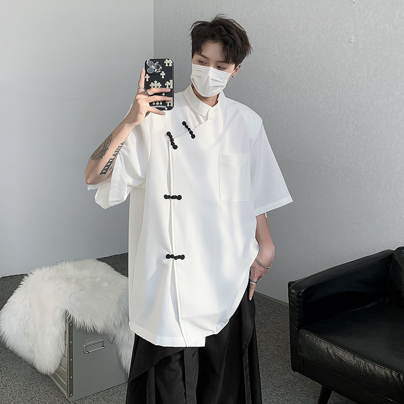 新中式男装中国风盘扣衬衫男短袖感冰丝衬衣立领中山外套唐装