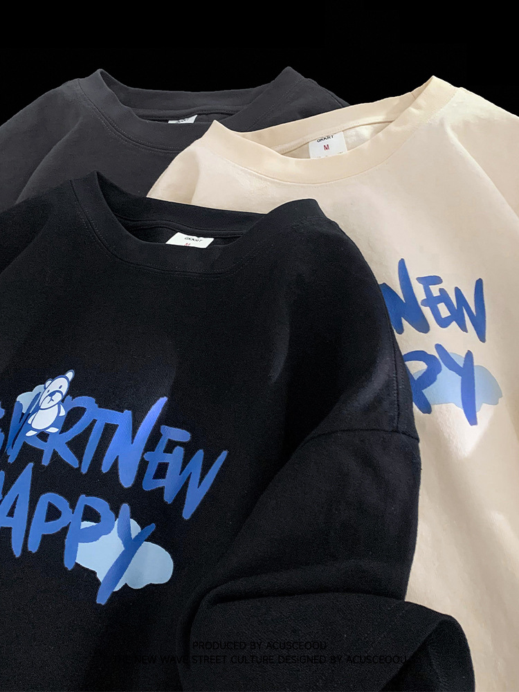 ACU男装|纯棉夏季男士短袖T恤新品美式卡通字母印花宽松体恤