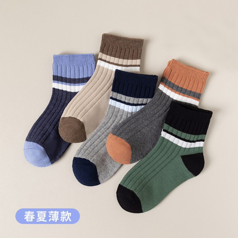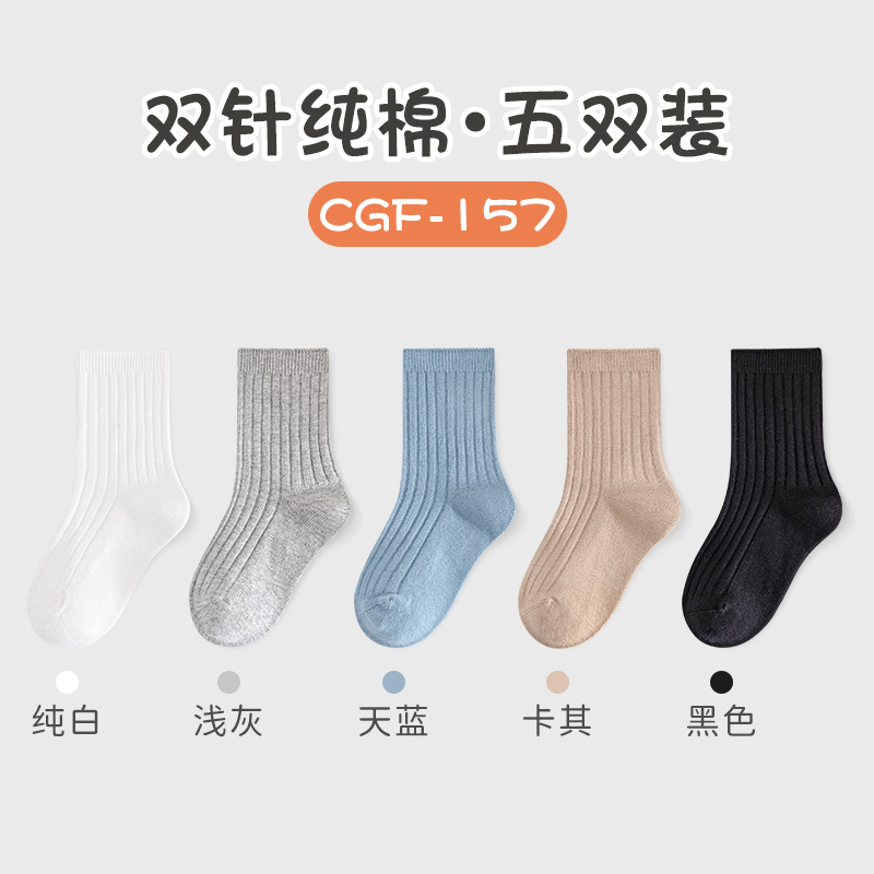 新款儿童袜子纯棉a类春秋男童女童棉袜双针无骨宝宝袜子中筒袜