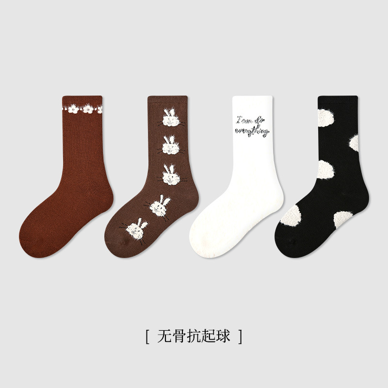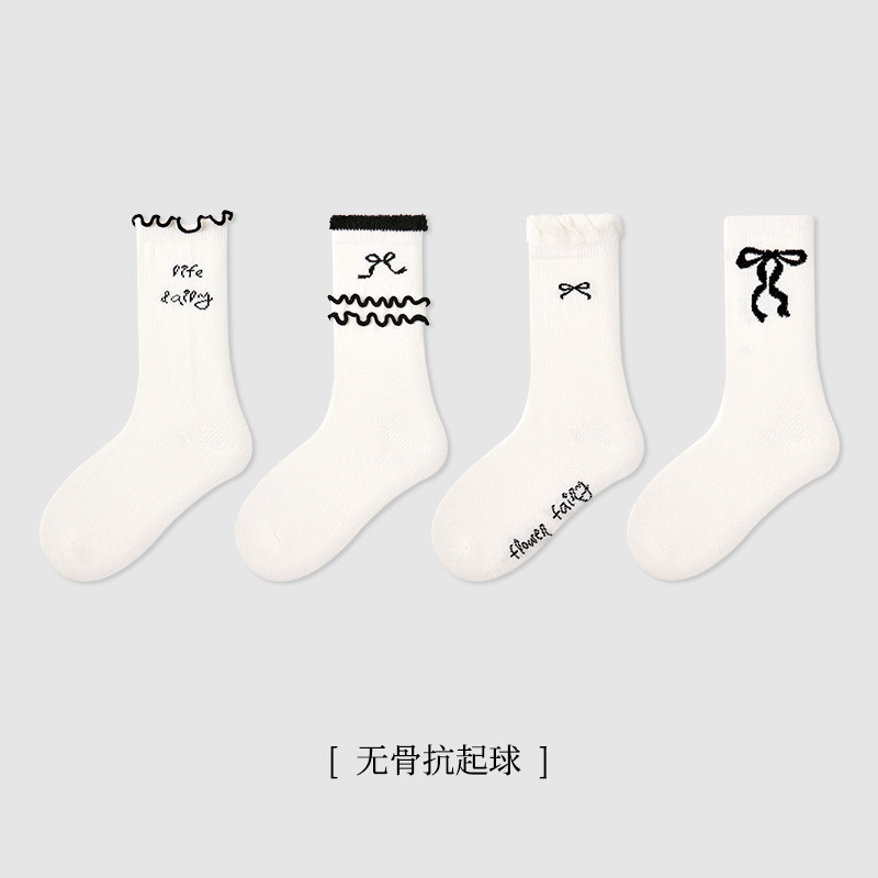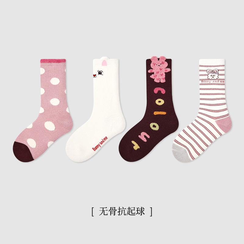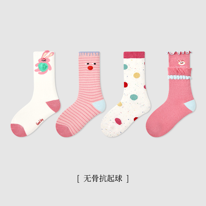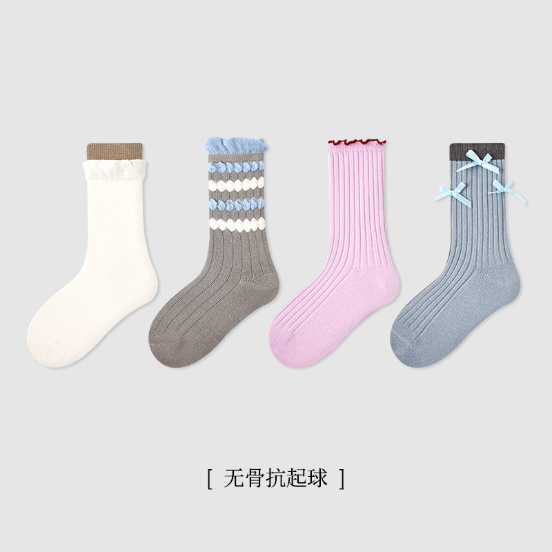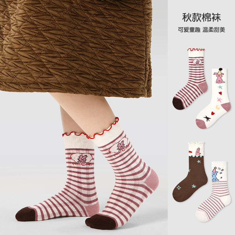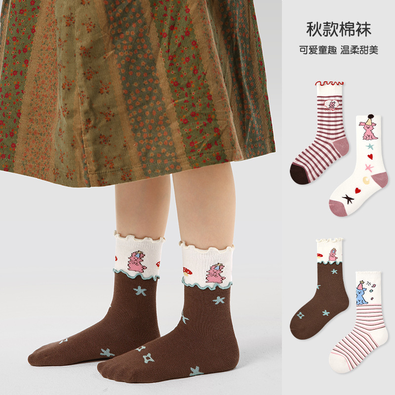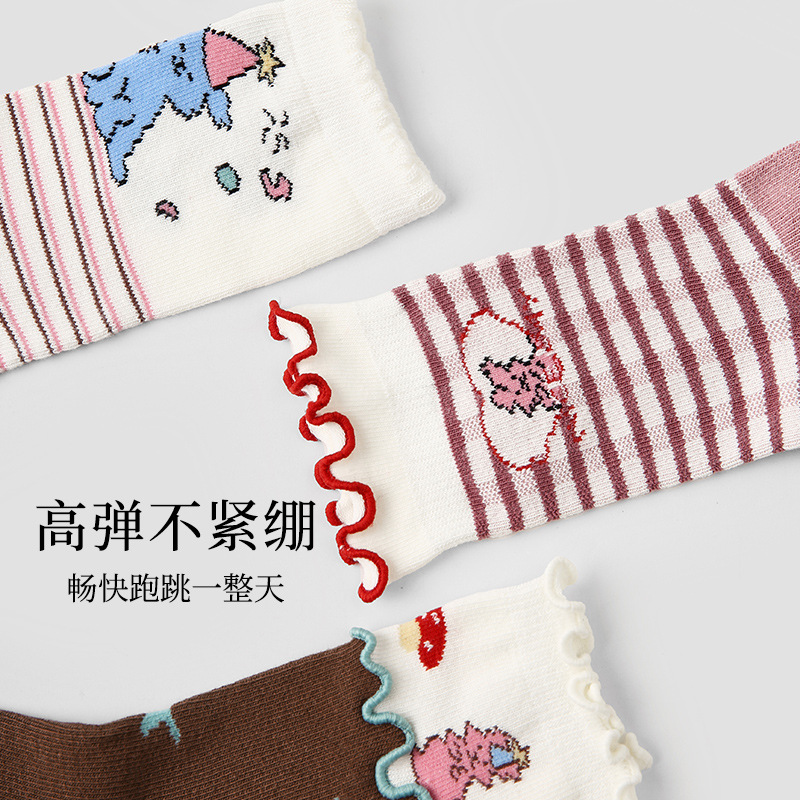 1752只一只儿童袜秋季新款卡通条纹木耳边中筒袜棉女童无骨宝宝袜