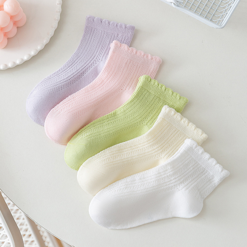 春季女童袜子儿童棉质中筒袜春夏可爱透气吸汗中筒甜美童袜女批发