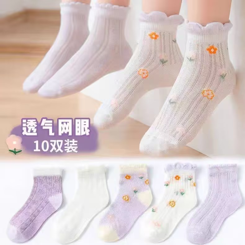 春秋新款女童袜子薄款卡通透气儿童中筒袜男童可爱网眼童袜夏批发