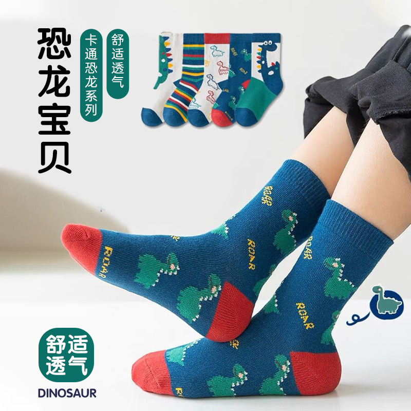 2025春季童袜可爱中筒袜男童恐龙加厚中大童棉袜批发春秋儿童袜子