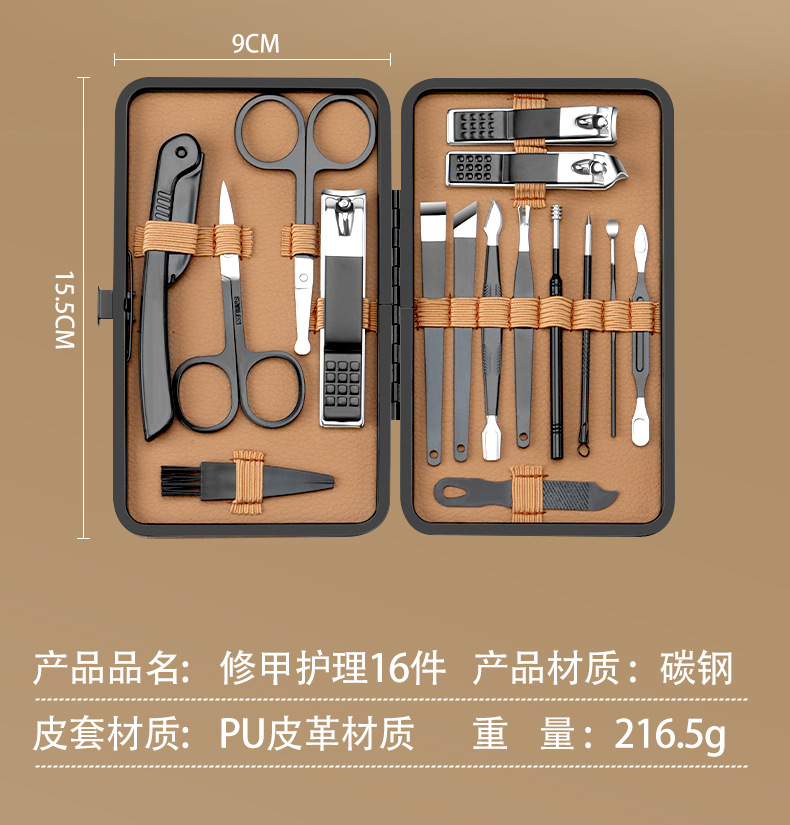 新款跨境德系高端半黑指甲刀套装全套7-24件套不锈钢美甲工具现货