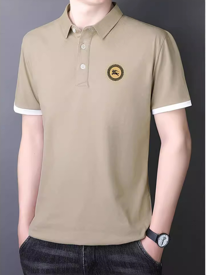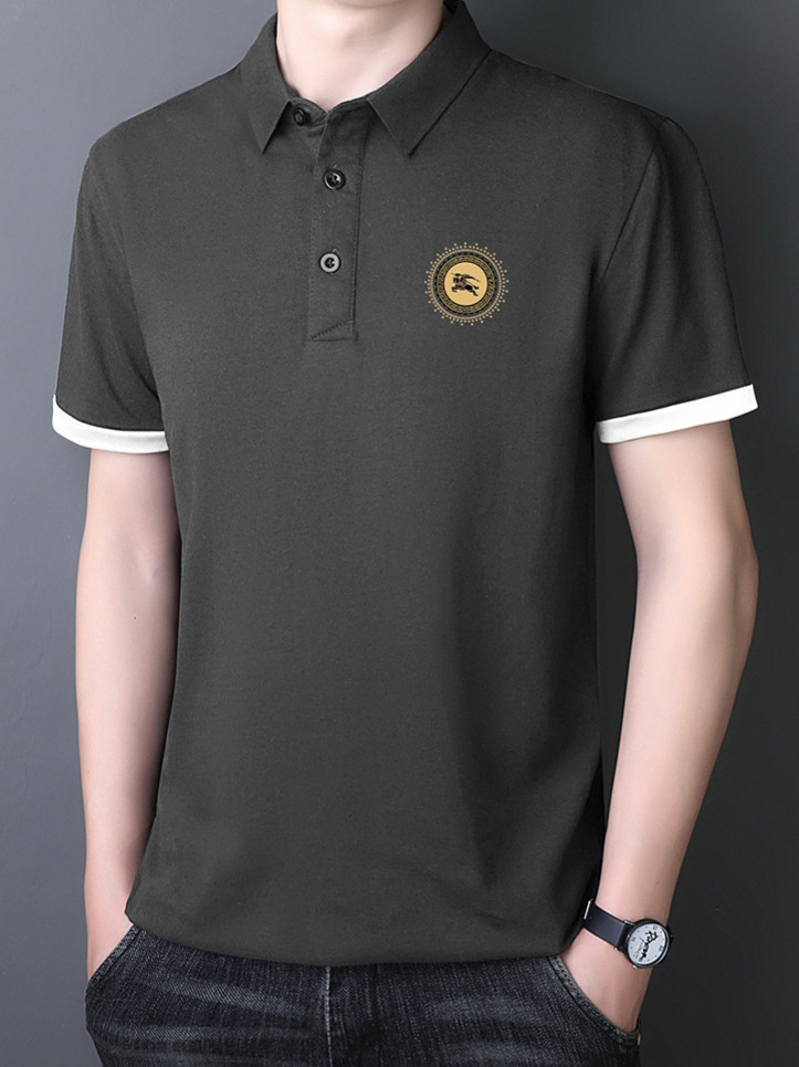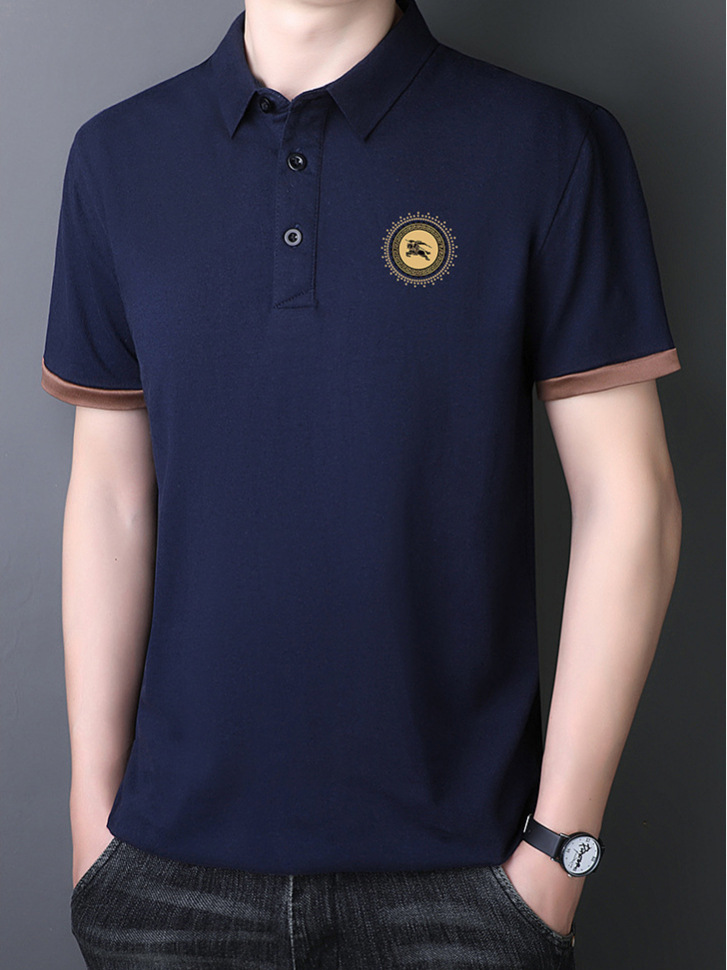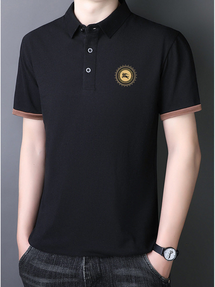 短袖Polo衫男式夏季新品印花合体翻领T恤珠地棉冰丝透气商务男装