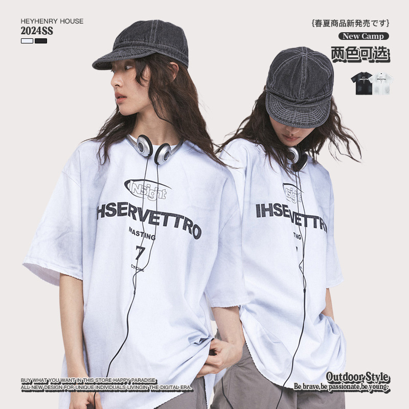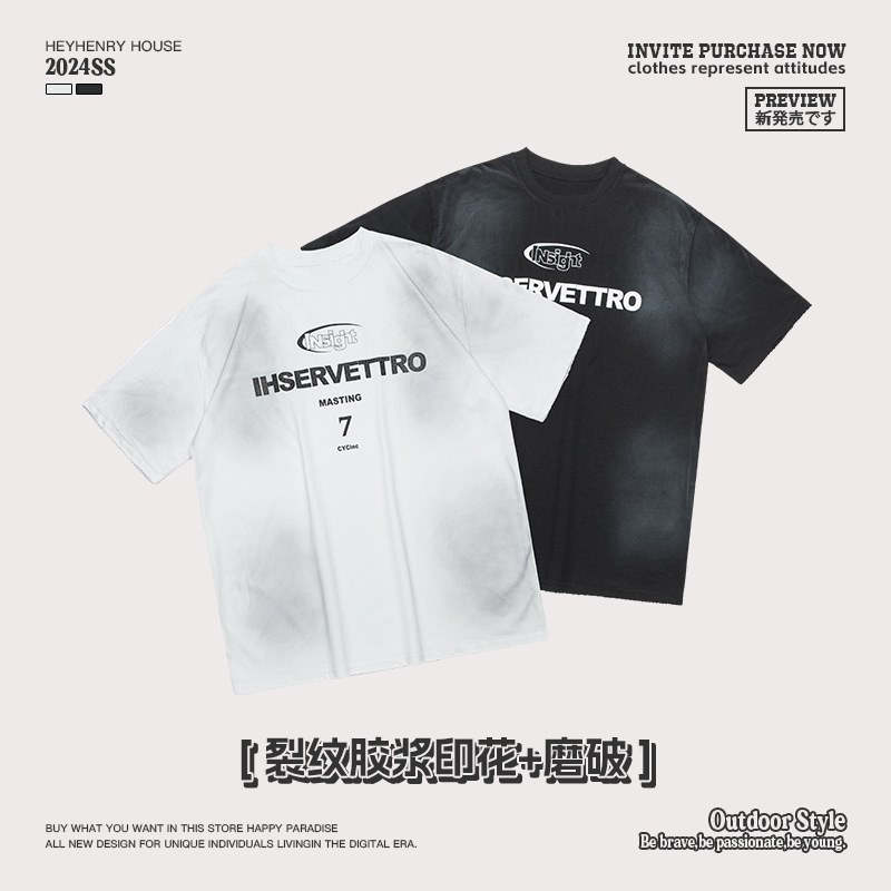 HeyHenry 男装潮牌街头扎染水洗印花半袖t恤夏季嘻哈情侣短袖