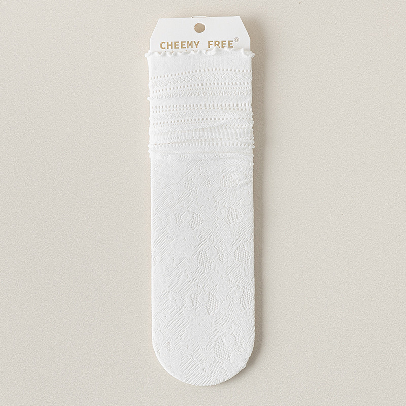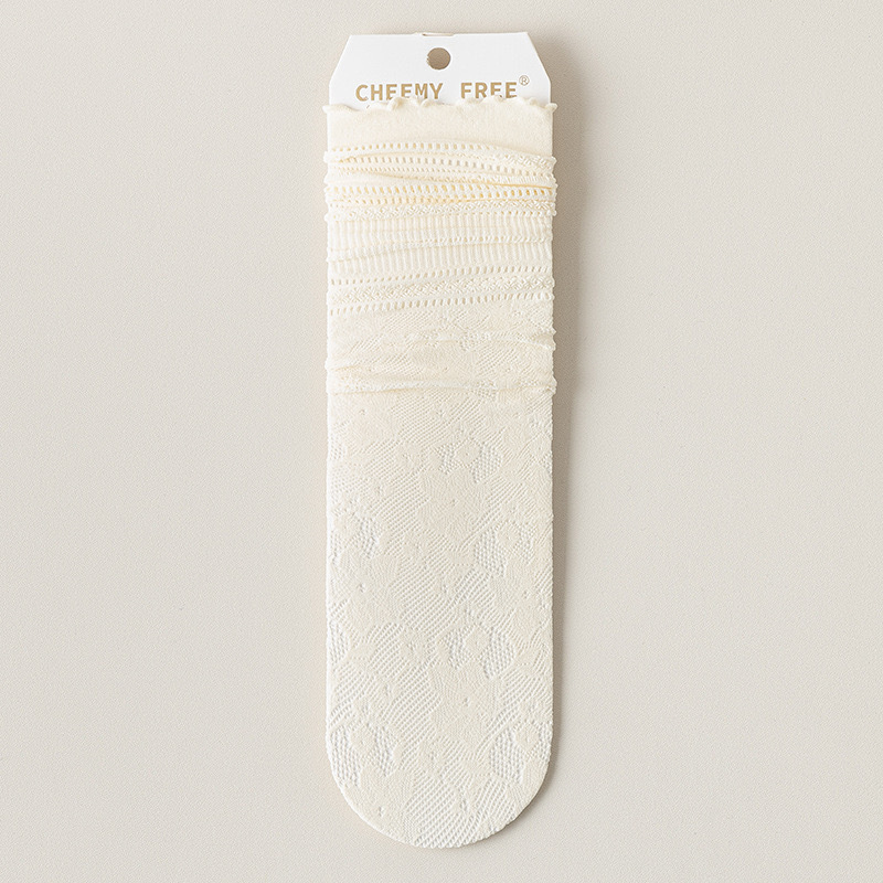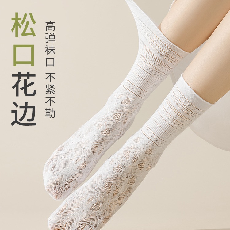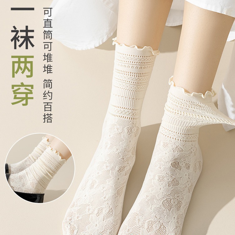 夏季蕾丝堆堆袜花边网眼冰冰袜薄款中筒袜透气袜子女jk凉感蕾丝袜