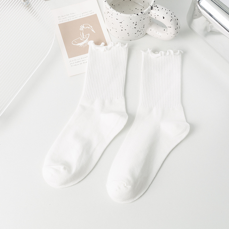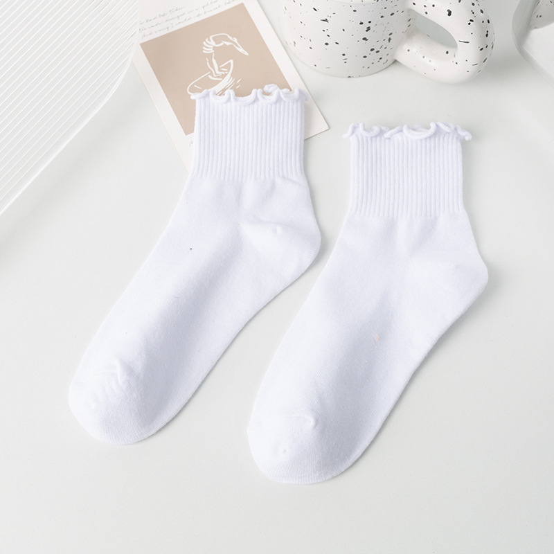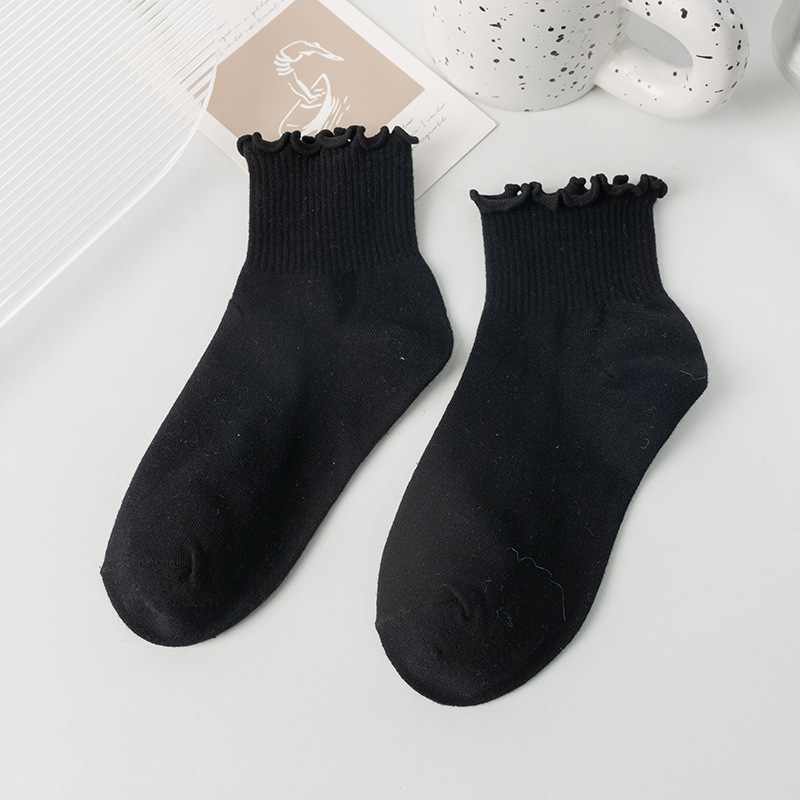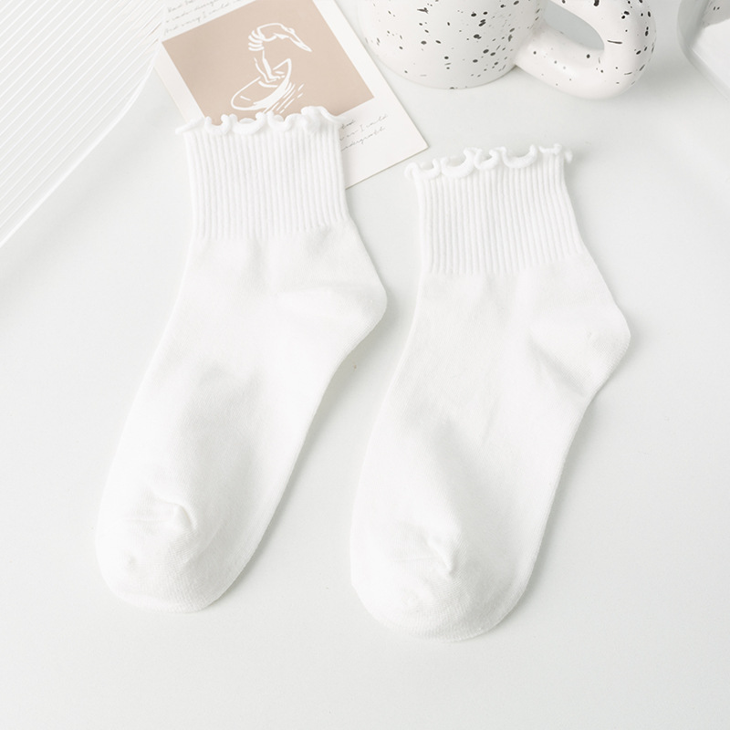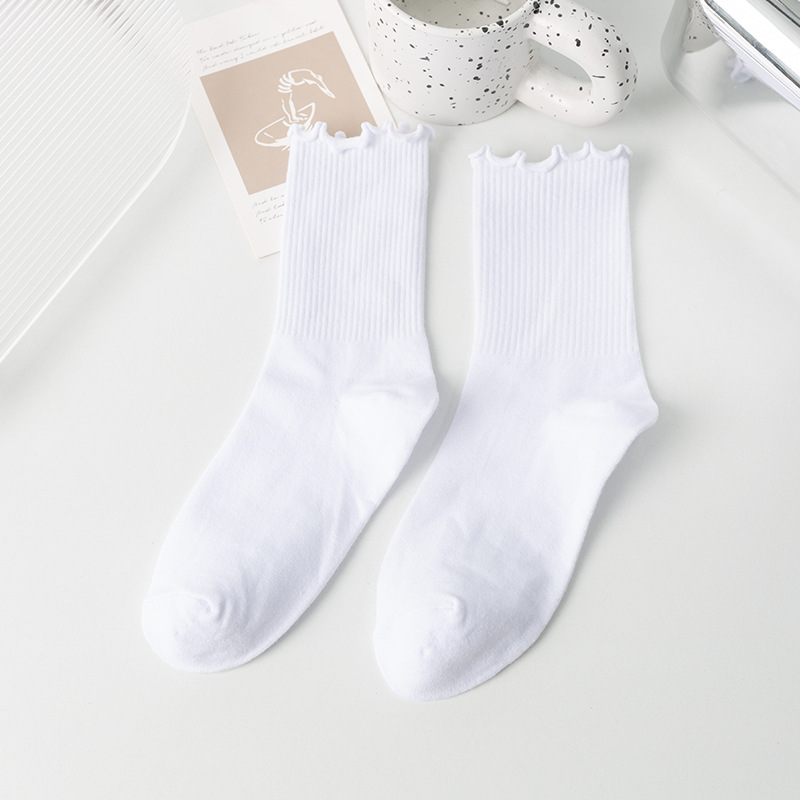 木耳边纯色中筒袜女生短筒袜春夏新款小红书爆款袜子时尚百搭女袜